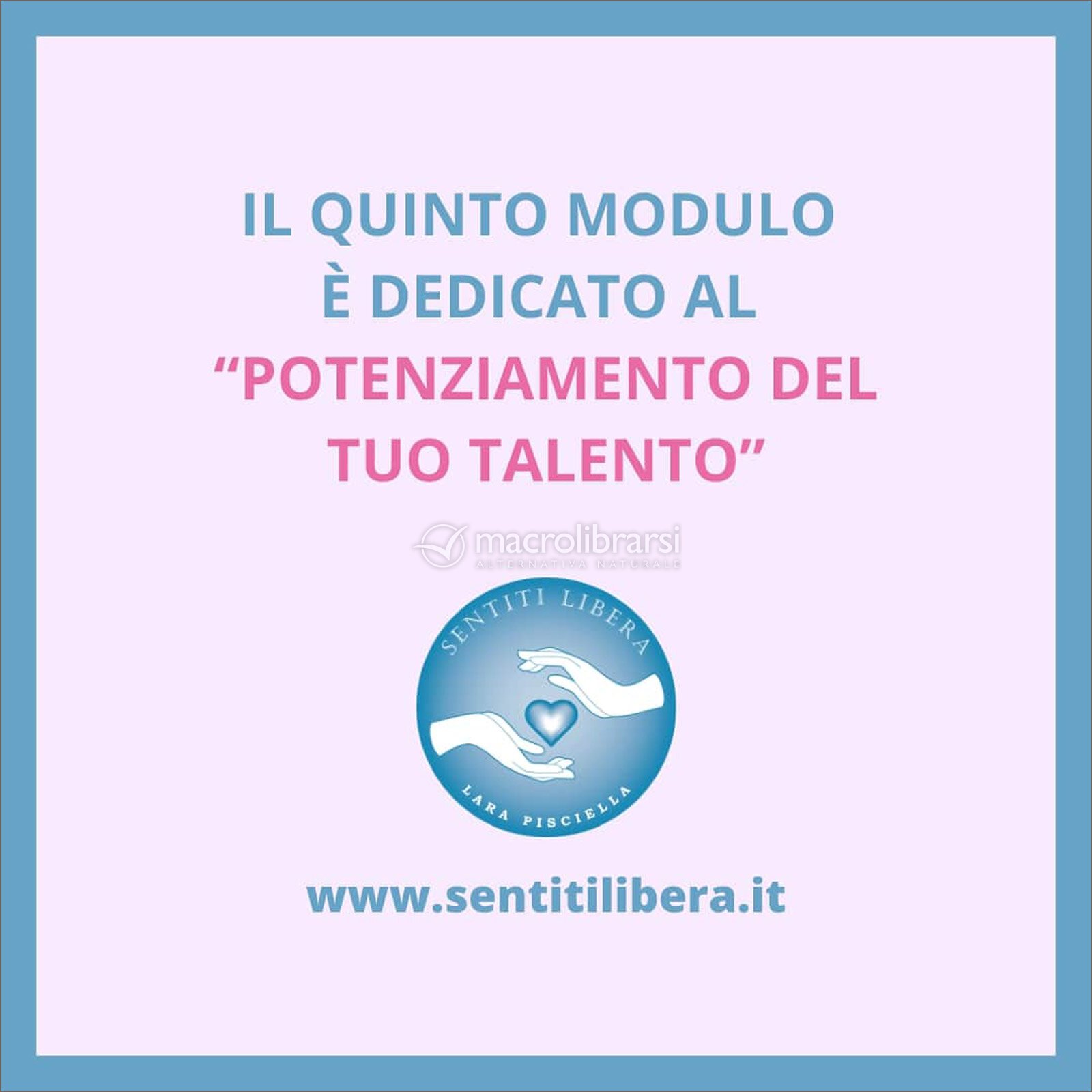 Cinque video da 20 minuti ognuno che ti permetteranno di superare paure, difficoltà, giudizi, sensi di colpa e lasciarti alle spalle qualsiasi ostacolo, per trovare così il tuo talento!