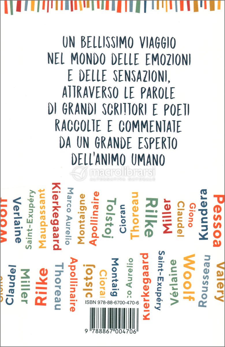 Un bellissimo viaggio nel mondo delle emozioni e delle sensazioni, attraverso le parole di grandi scrittori e poeti: Montaigne, Claudel, Valéry, Thoreau, Kierkegaard, Rilke, Rousseau, Miller, Apollinaire, Cioran, Saint-Exupéry, Marco Aurelio, Pessoa, Giono, Kundera, Maupassant, Tolstoy, Verlaine, Woolf.