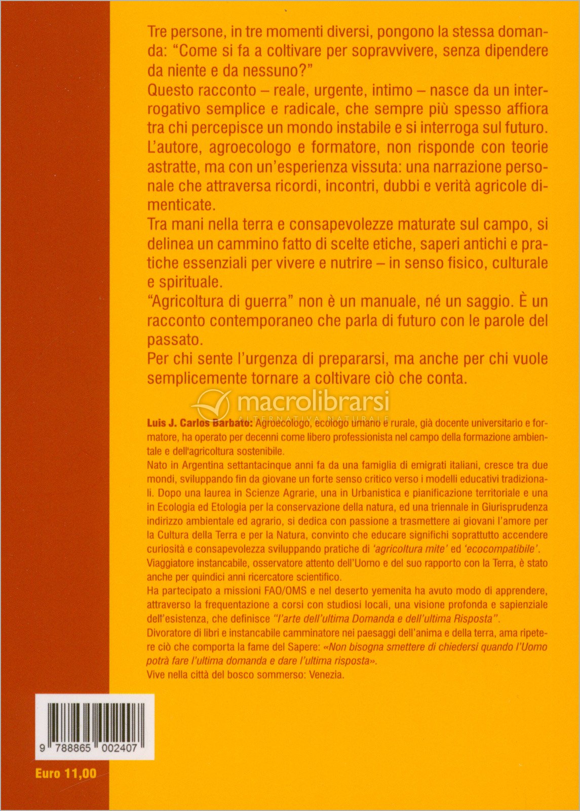 Agricoltura di guerra non è un manuale tecnico, né un racconto nostalgico, è un invito a guardare al futuro con radici ben piantate nel passato, recuperando quella conoscenza essenziale che può rendere la vita più autonoma, consapevole e sostenibile.
