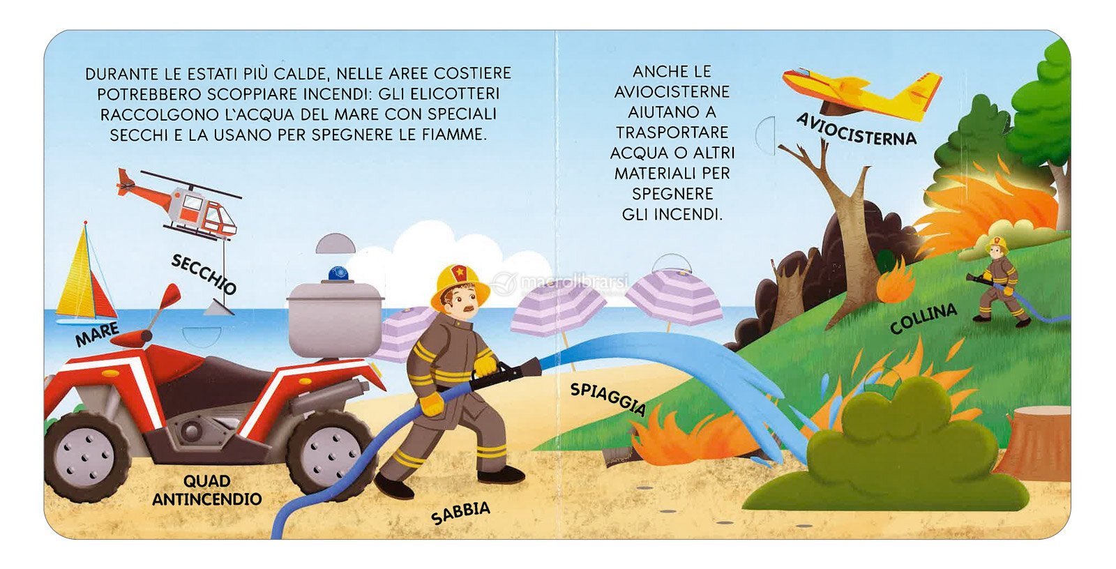 Attraverso immagini vivaci e testi semplici, il volume introduce il mondo dei pompieri con un linguaggio adatto ai bambini, stimolando curiosità e desiderio di conoscere.