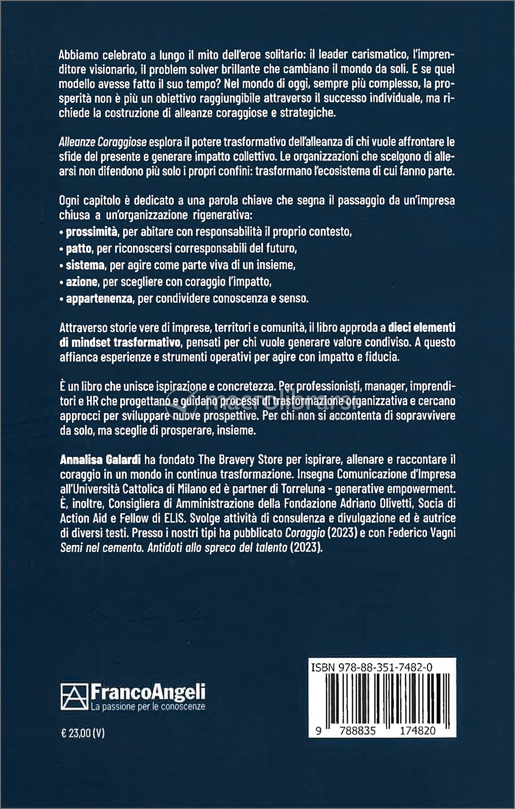 “Alleanze coraggiose” non è un semplice libro sul business o sul management: è un manifesto per una nuova cultura dell’alleanza, un invito a uscire dall’isolamento per abbracciare il valore della connessione, della corresponsabilità e della comunità.