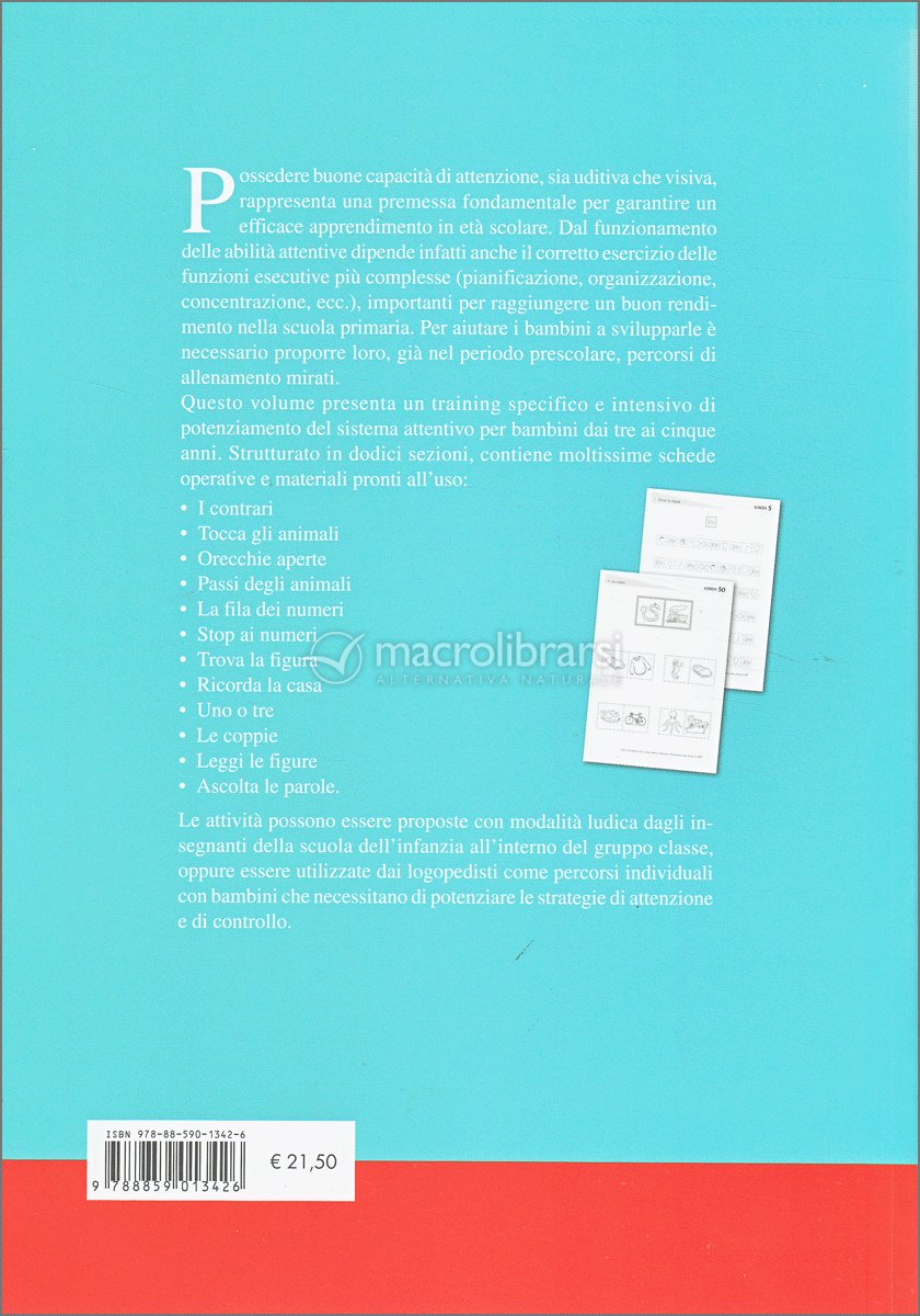 Questo volume presenta un training specifico e intensivo di potenziamento del sistema attentivo per bambini dai tre ai cinque anni.
