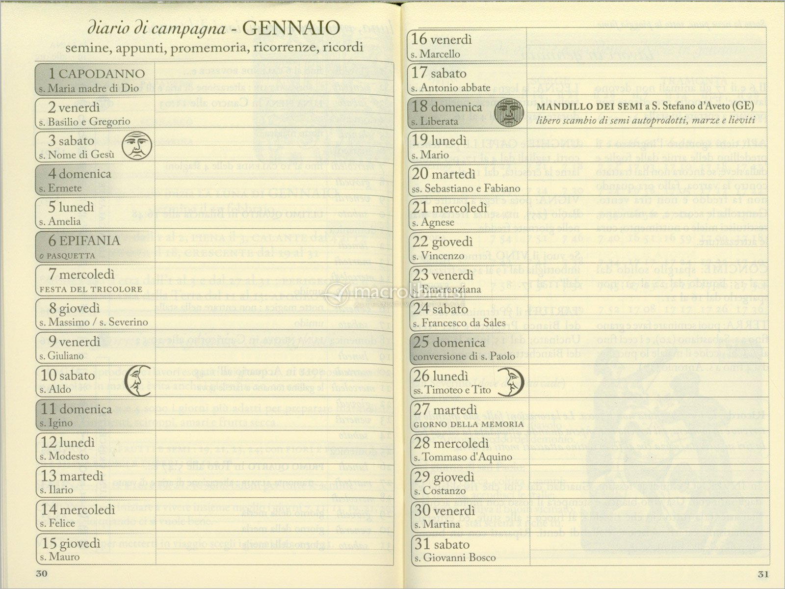 - desideri un riferimento mensile per organizzare attività domestiche e rurali;