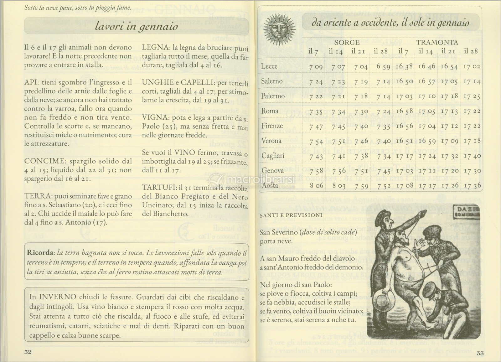 - indicazioni pratiche su semine, travasi, conserve, legna e lavori stagionali
