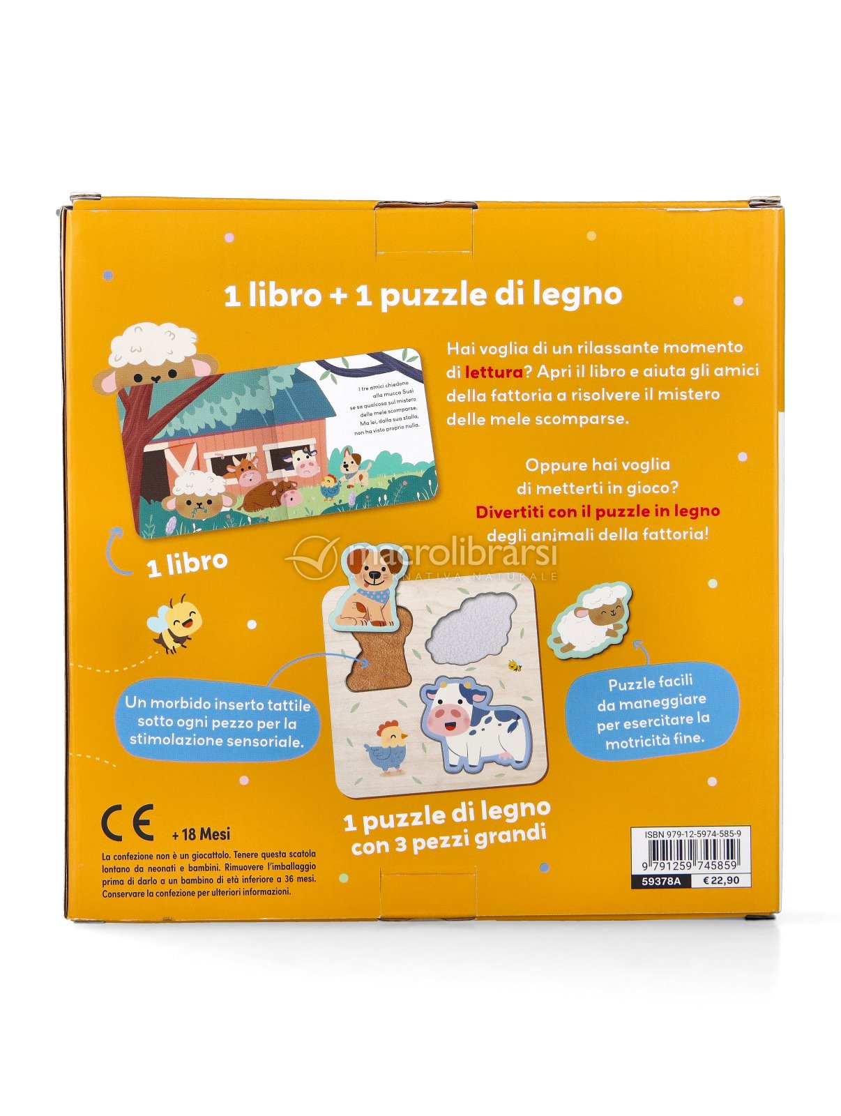 | Confezione | libro cartonato + 1 puzzle di legno con 3 pezzi grandi |
