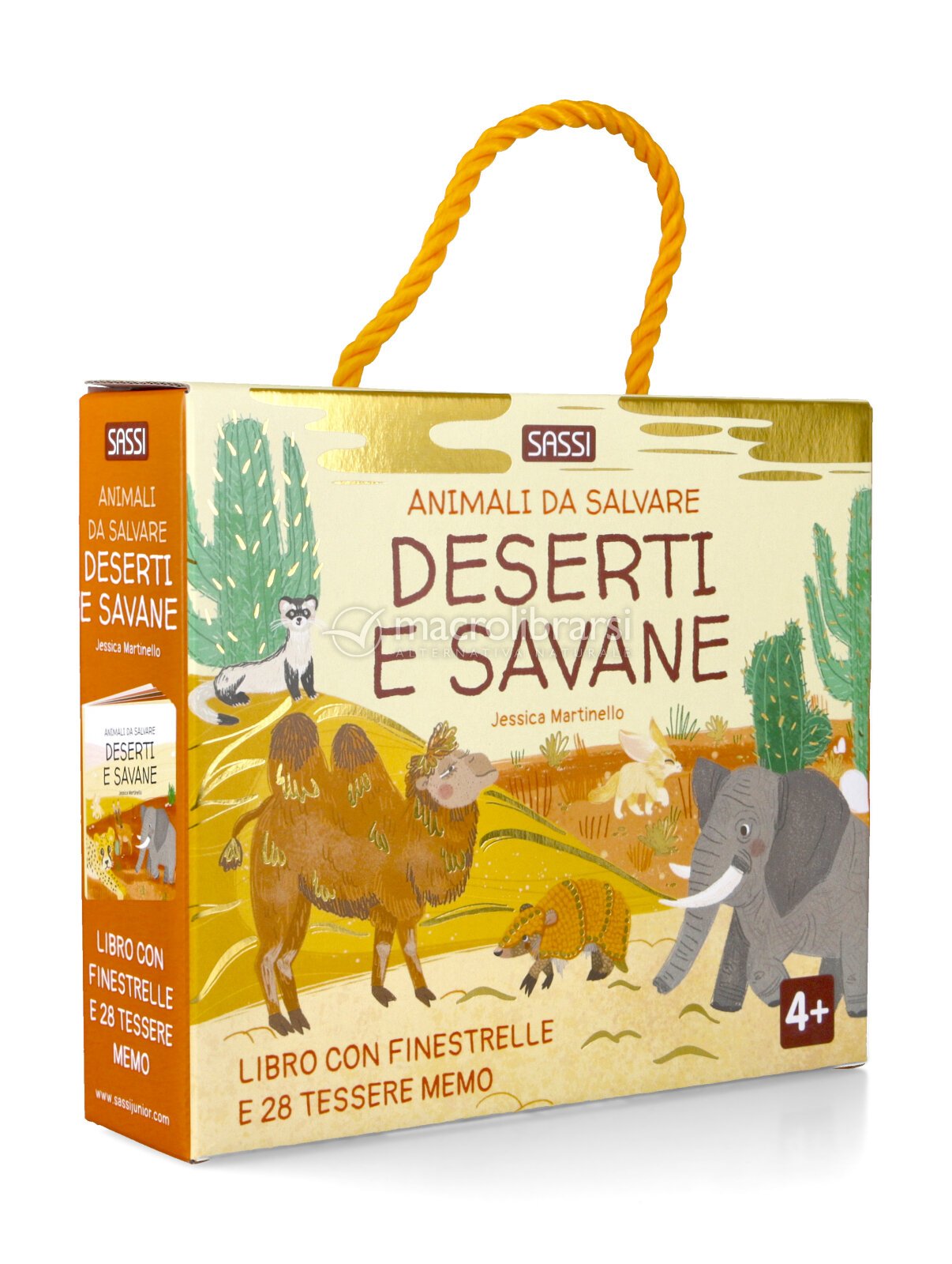 Solleva le finestrelle nelle pagine del libro e scopri le curiosità sugli animali che popolano i deserti e le savane, sugli ambienti in cui vivono e sulle motivazioni per cui si trovano in pericolo.