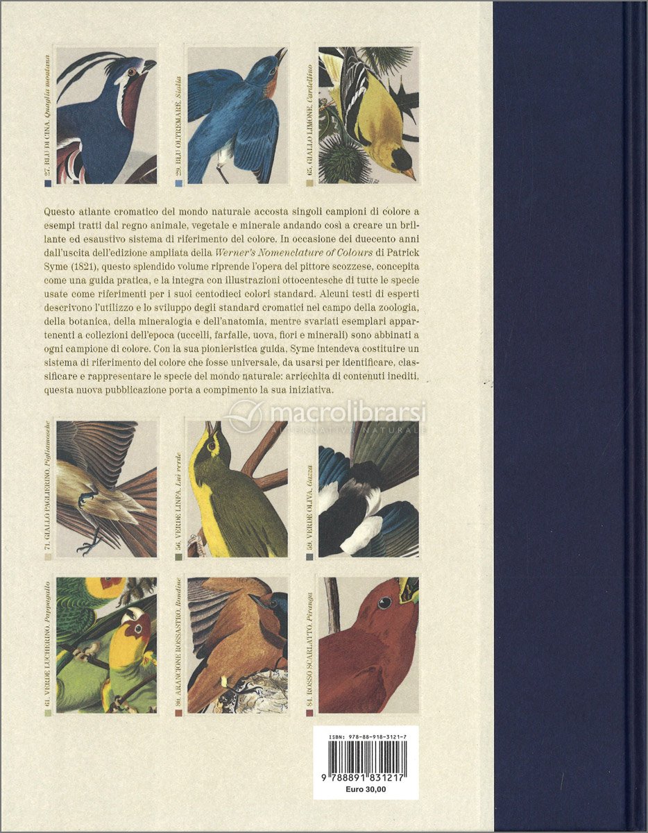 In occasione dei duecento anni dall'uscita dell'edizione ampliata della "Werner's Nomenclature of Colours" di Patrick Syme (1821), questo volume riprende l'opera del pittore scozzese, concepita come una guida pratica, e la integra con illustrazioni ottocentesche di tutte le specie usate come riferimenti per i suoi centodieci colori standard.