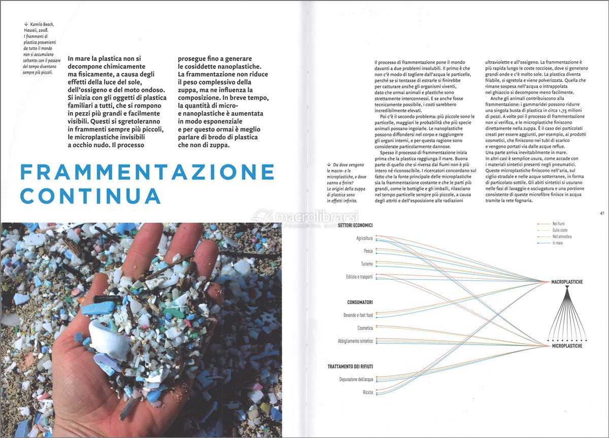 Illustrato a colori e arricchito da una serie di fotografie realmente straordinarie, l’Atlante mondiale della zuppa di plastica si sofferma nella prima parte sui fattori che ci hanno condotto ad annaspare nella “zuppa di plastica”, quella contaminazione da microplastiche ormai ubiquitaria che, secondo diversi studiosi, rappresenta il più grave problema ambientale con cui abbiamo mai dovuto confrontarci.