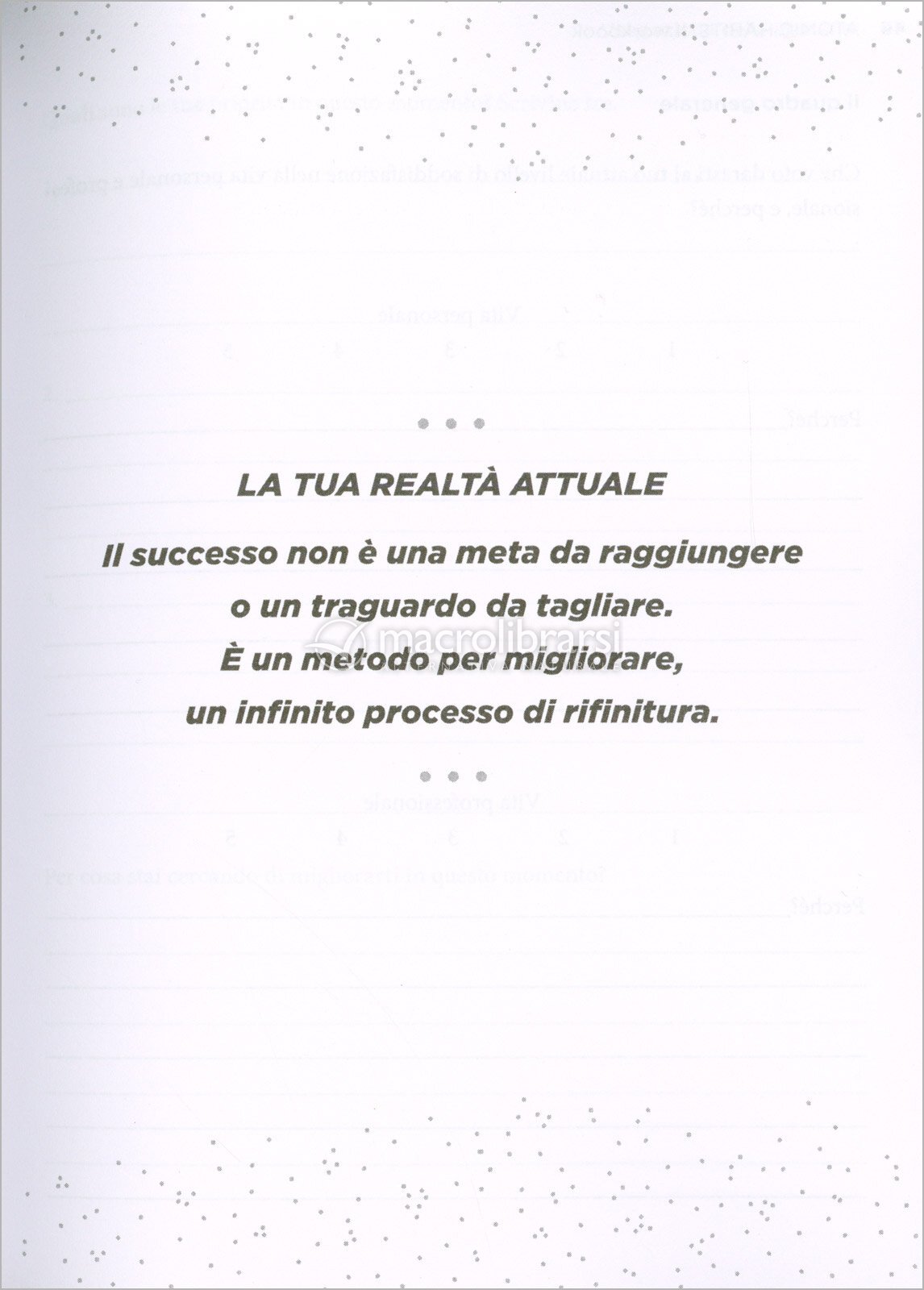 A differenza di un semplice journal o di un manuale motivazionale, questo workbook è uno strumento di lavoro vero e proprio. Le pagine invitano a riflettere, scrivere, osservare e correggere il tiro, aiutandoti a costruire routine più funzionali partendo da azioni minime ma coerenti.