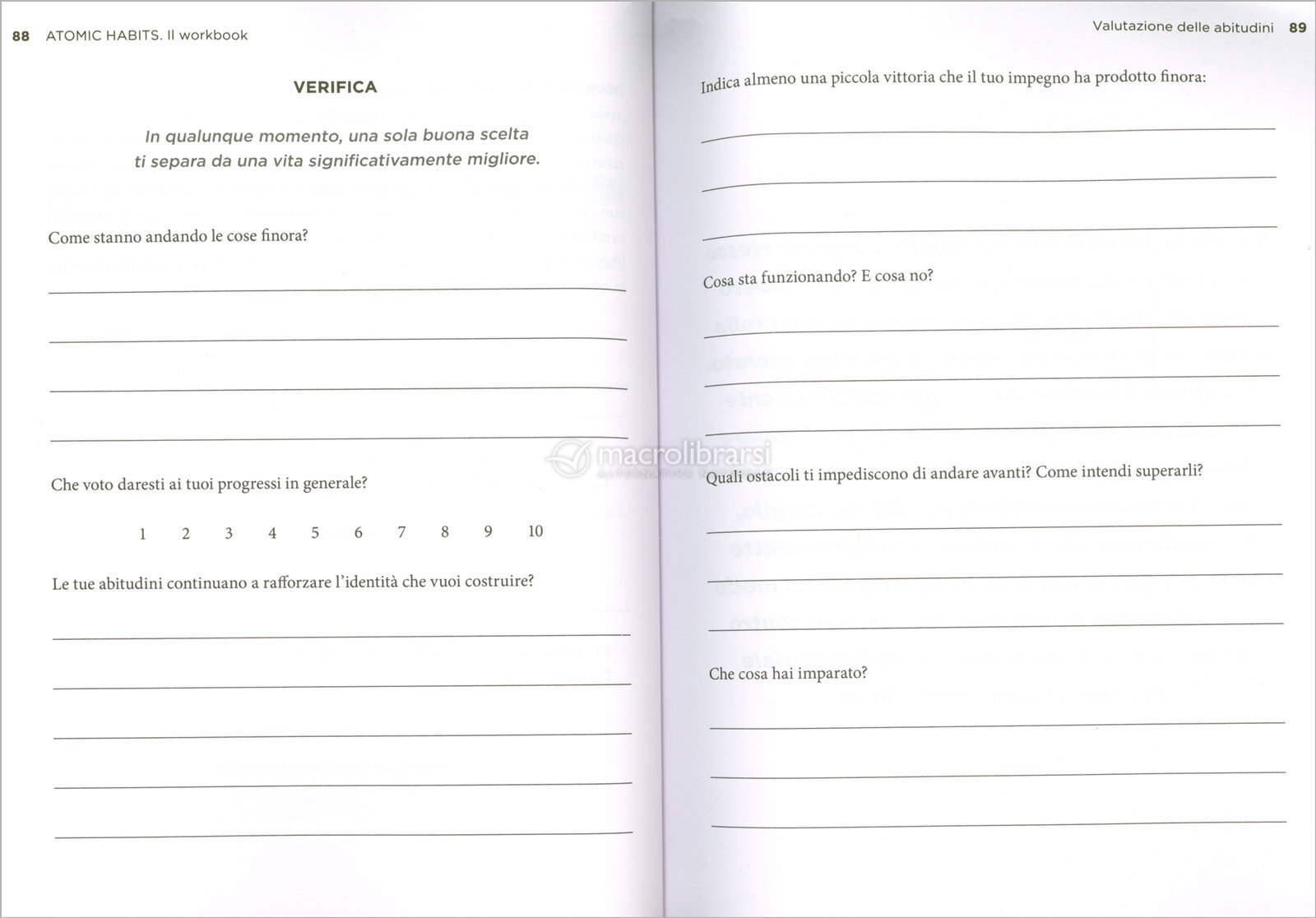 Il cuore del metodo resta il concetto di “abitudini atomiche”: azioni minuscole, apparentemente insignificanti, ma capaci nel tempo di produrre conseguenze profonde e durature. Lavorando su costanza, ambiente e consapevolezza, il workbook aiuta a rendere visibili i progressi e a mantenere la motivazione senza ricorrere a sforzi eccessivi o obiettivi irrealistici.
