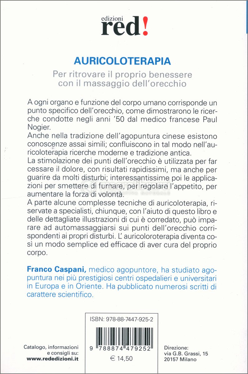 In meno di duecento pagine, questo libro quasi tascabile contiene tutto ciò che è necessario sapere per praticare l'auricoloterapia, dalla descrizione dei vari metodi e delle tecniche utilizzabili alle mappe dettagliate dei punti sull'orecchio, facilmente individuabili grazie alle griglie numerate sovrapposte alle mappe auricolari. L'intera seconda metà del libro è dedicata al trattamento dei sintomi, suddivisi per apparati e sistemi. Concludono il volume delle schede che riportano la mappa auricolare e possono essere utilizzate per annotare i dati di ogni trattamento effettuato.