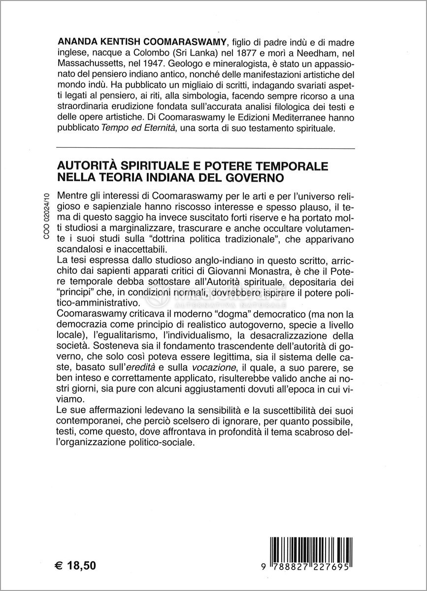 Autorità Spirituale e Potere Temporale nella Teoria Indiana del Governo — Libro
