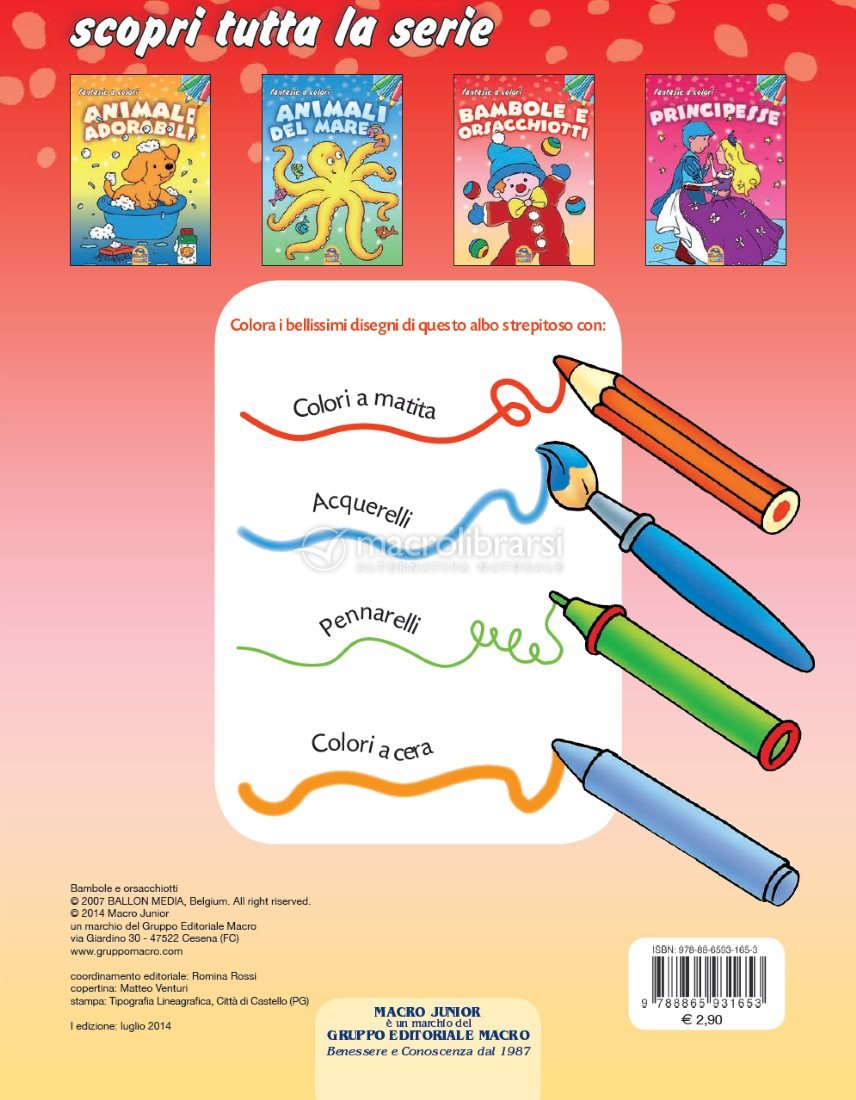 Bellissimi albi a tema, tutti da colorare seguendo la propria fantasia e allegria, per divertirsi a creare incredibili animali del mare, dolci pupazzi e bambole, principi e principesse da favola e adorabili cuccioli!