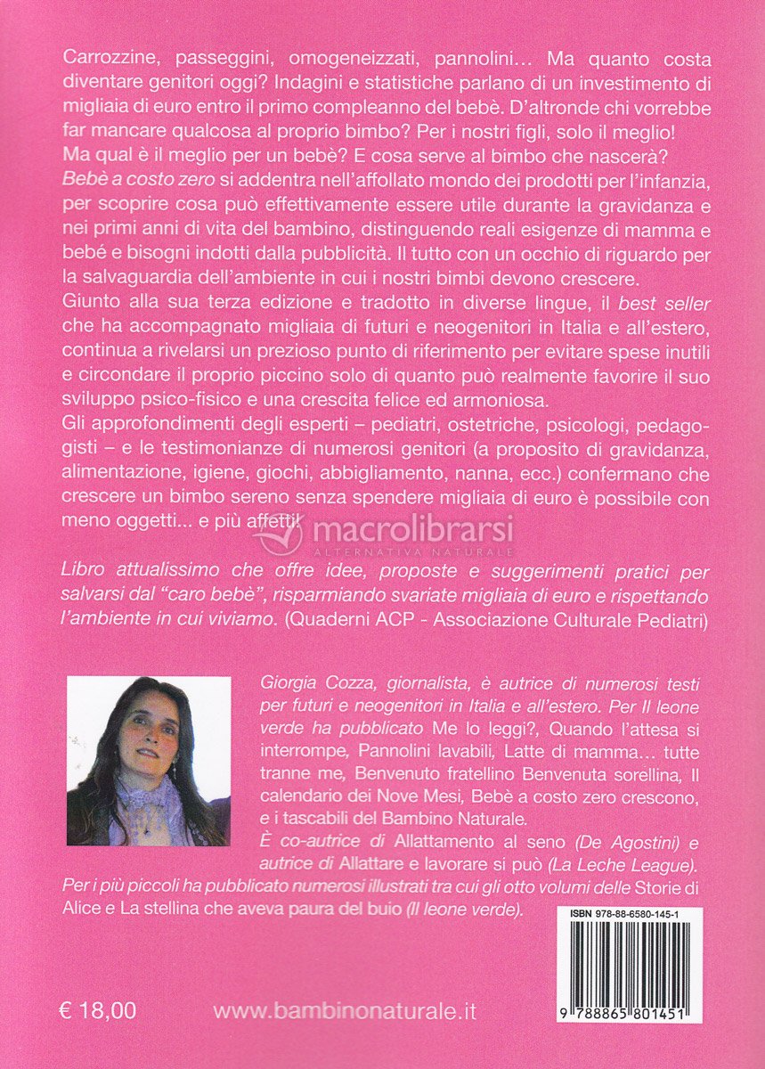 Libro utilissimo e interessante. Offre molti spunti e riflessioni riguardo gli acquisti da fare per la nascita di un figlio. Mette molti freni rispetto alla pubblicità che ci bombarda alla televisione e sui giornali, mostrando come indispensabili molti oggetti che poi in realtà non lo sono per nulla. Responsabilizza ogni genitore verso il proprio figlio ma anche la società, offrendo l'opportunità di essere più ecologici ma anche di risparmiare molti soldi.