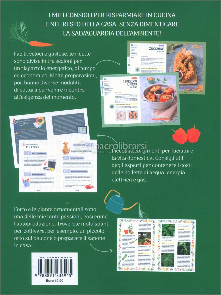 In molti casi Benedetta propone diverse modalità di cottura, per lasciare a noi la libertà di scegliere in base alle esigenze del momento. Ma non solo: regala utili consigli su come risparmiare in ogni ambiente della casa, attraverso piccoli gesti o attenzioni che permettono di contenere i costi delle bollette di luce, acqua e gas.