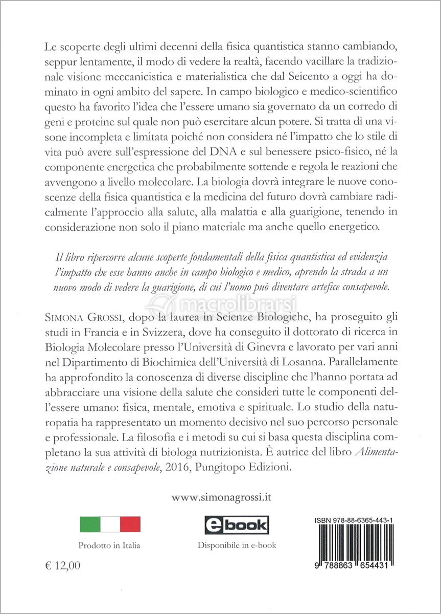 Bel libro, scorrevole e molto chiaro. La dott.ssa Grossi riassume le nuove frontiere della biologia, e la sua inestricabile connessione con la fisica quantistica, corredando il testo di riferimenti bibliografici. Nell’ultima parte emergono le sue competenze naturopatiche. Le recenti scoperte scientifiche fanno da puntello per confermare la validità della naturopatia. Molto interessante.