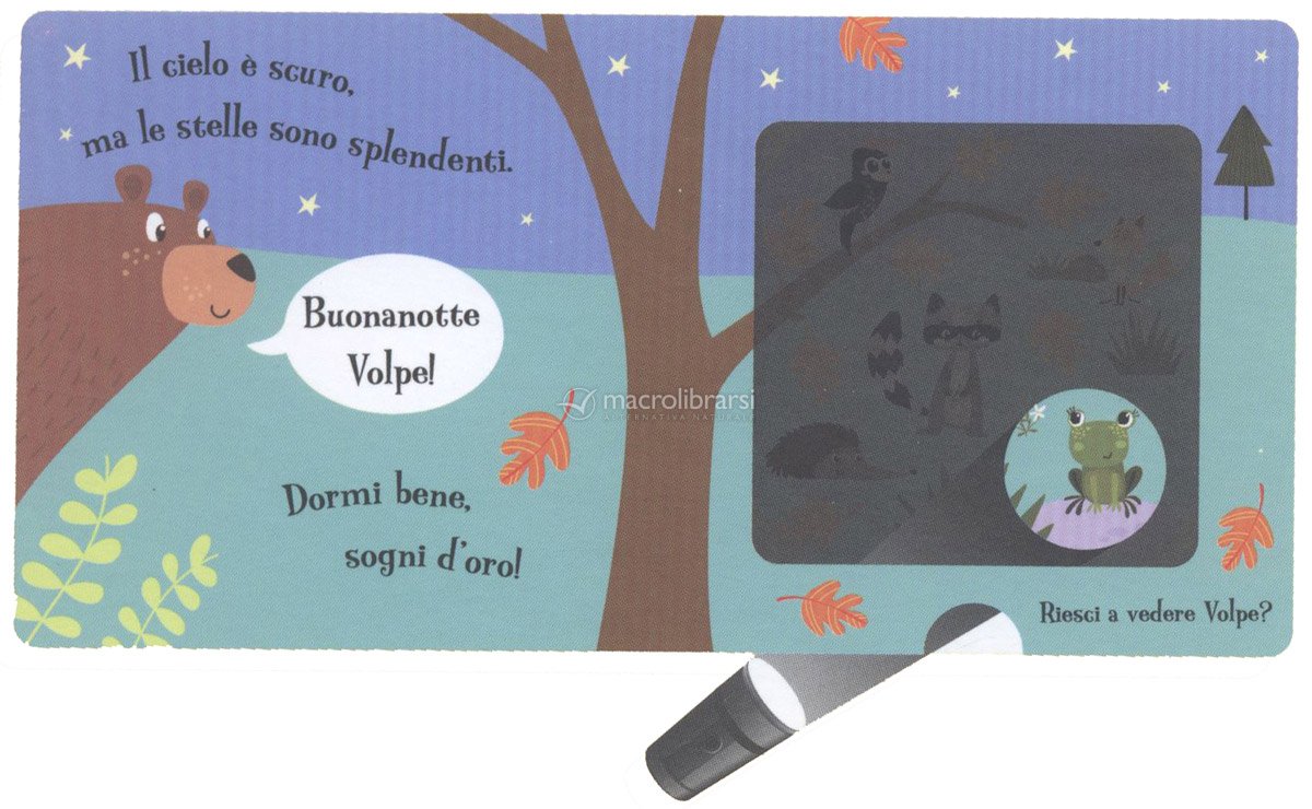 Inserisci la torcia magica tra le pagine per trovare gli amici di Orso in ogni scena notturna.