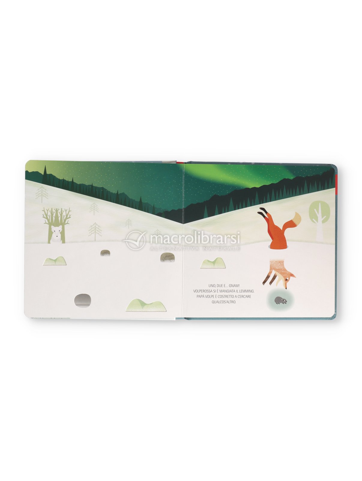 In un paesaggio innevato, reso magico da misteriosi passaggi forati, pagine sagomate e preziosi dettagli scavati da toccare con le dita per seguire la storia di Volpina, una piccola e tenera volpe artica.