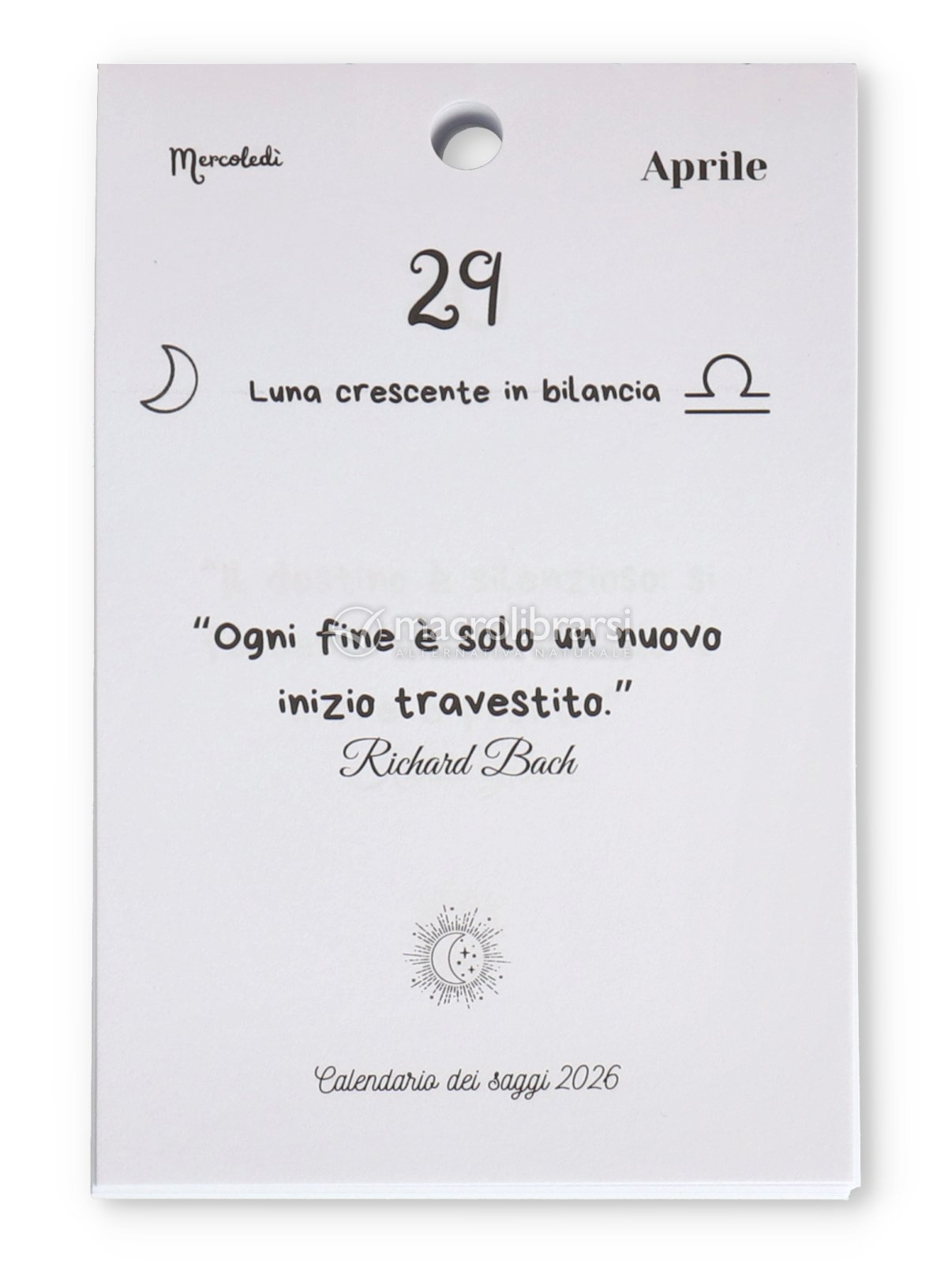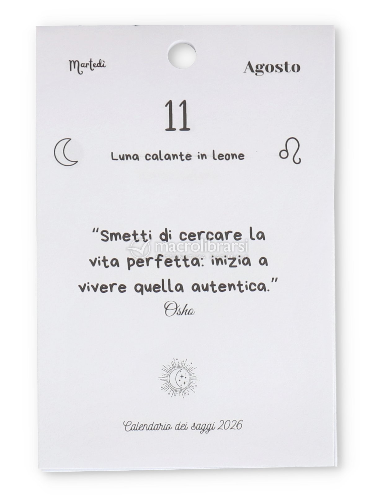 Ogni giorno, un foglio dedicato a un saggio che ispira riflessioni sui grandi temi della vita, con la fase lunare nel segno zodiacale indicata.