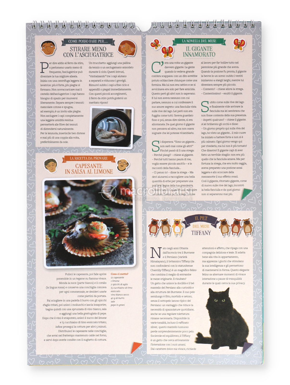 Non solo un calendario: troverai anche ricette veloci, racconti per i bambini e consigli pratici per affrontare i piccoli imprevisti quotidiani. Le foto e le illustrazioni lo rendono piacevole da consultare, trasformando la pianificazione in un momento condiviso.