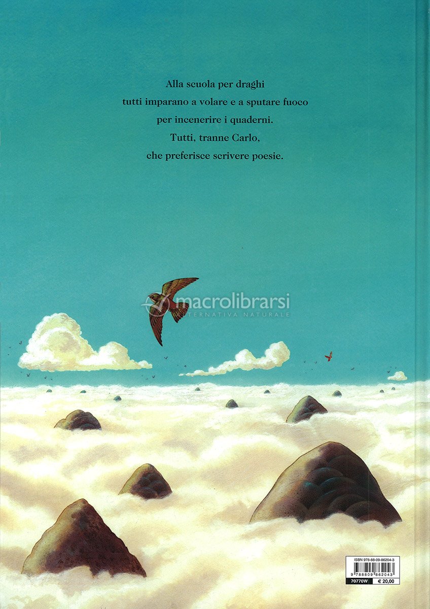 Alla scuola dei draghi, tutti imparano a volare e a bruciare i quaderni con delle belle fiammate. Tutti, tranne Carlo, un draghetto dalle ali spropositate e dai piedi enormi, che sui quaderni, invece, ci scrive le poesie.