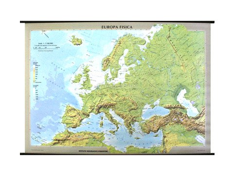 Carta murale a doppia faccia, un lato con cartografia fisica e un lato con cartografia politica