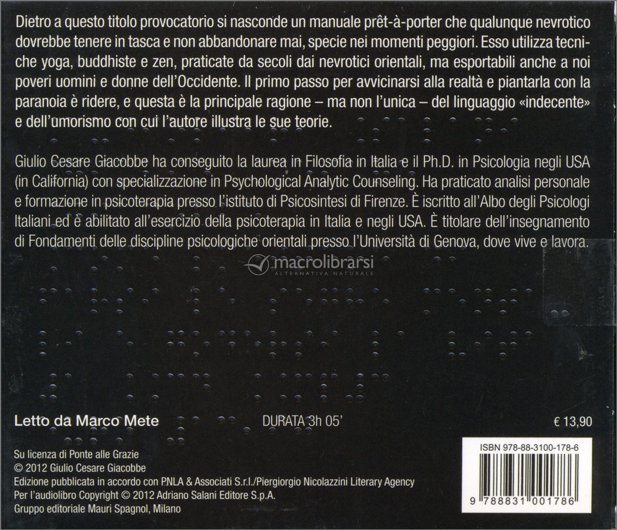 Dietro a questo titolo provocatorio si nasconde un manuale "prêt-à-porter" che i nevrotici, o aspiranti tali, dovrebbero tenere in tasca. Esso utilizza tecniche yoga, buddhiste e zen, praticate da secoli dagli orientali (evidentemente anche loro nevrotici) ma esportabili anche a noi poveri uomini e donne dell'occidente.