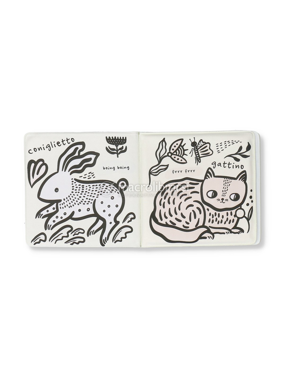 Questo libro bagno illustrato dallo studio americano Wee Gallery cambia colore appena immerso nell'acqua o quando lo si bagna con un dito o col pennello.