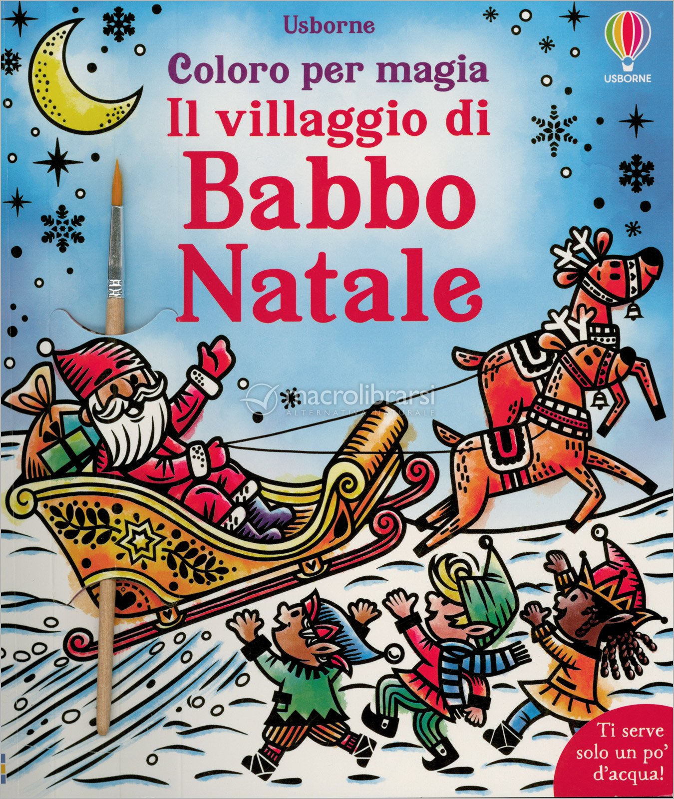 Ogni pagina è una sorpresa da scoprire: basta passare il pennello bagnato d’acqua per far apparire i colori nascosti e vedere prendere vita i laboratori degli elfi, i giocattoli scintillanti, la slitta carica di pacchetti e l’allegria che riempie l’aria natalizia.