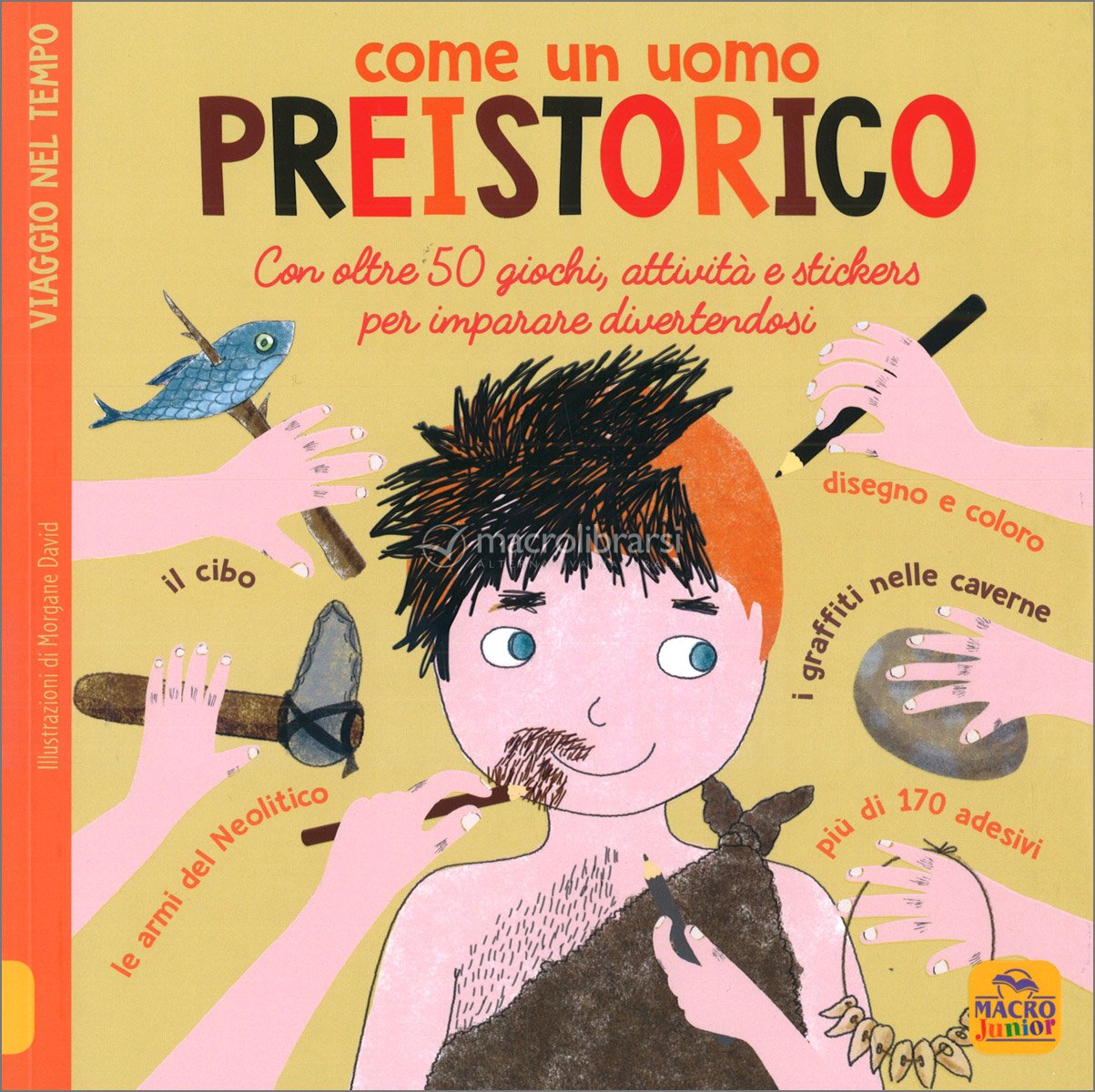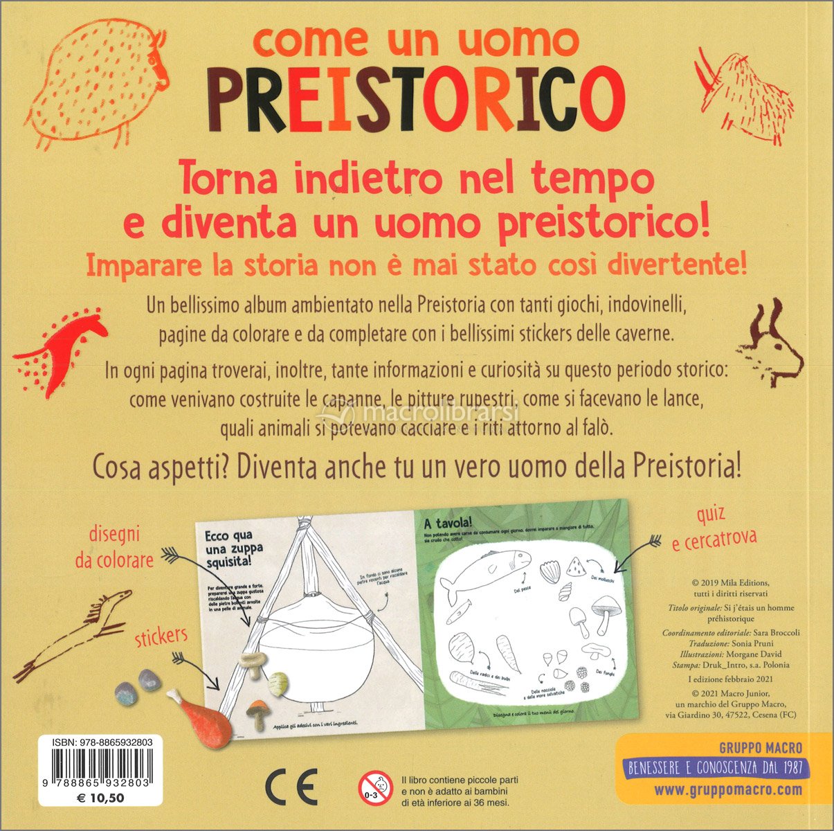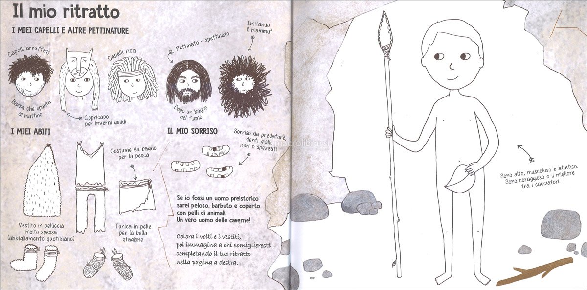 In ogni pagina troverai inoltre tante informazioni e curiosità su questo periodo storico: come venivano costruite le capanne, le pitture rupestri, come si facevano le lance, quali animali si potevano cacciare e i riti attorno al falò.