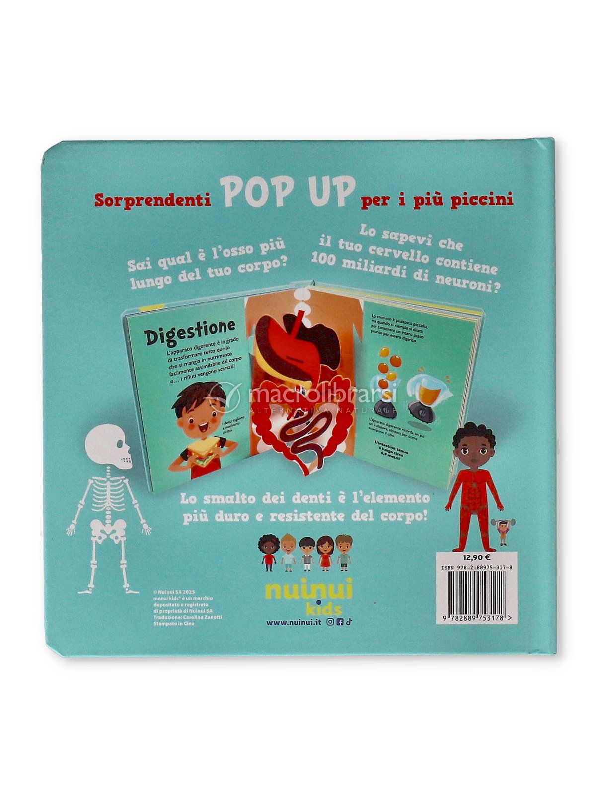 I muscoli, le ossa, gli organi... il nostro corpo raccontato attraverso numerose illustrazioni colorate, arricchite da spettacolari pop up. Inoltre, per approfondire i diversi argomenti, ci sono molte notizie curiose e interessanti, che rendono questo volume una lettura stimolante e un'occasione di divertimento.