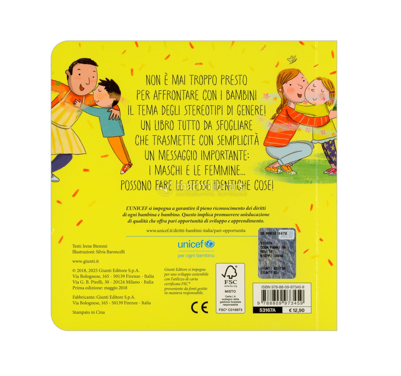 Ideato e curato da Irene Biemmi, esperta di pedagogia di genere e pari opportunità, questo libro insegna con semplicità e ironia che maschi e femmine possono fare le stesse identiche cose.
