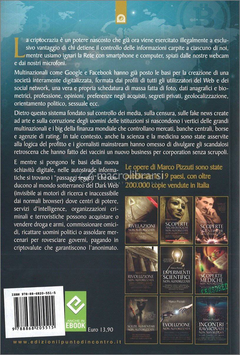 La criptocrazia è un potere nascosto che già ora viene esercitato illegalmente a esclusivo vantaggio di chi detiene il controllo delle informazioni carpite a ciascuno di noi, mentre usiamo ignari la Rete con smartphone e computer, spiati dalle nostre webcam e dai nostri microfoni.