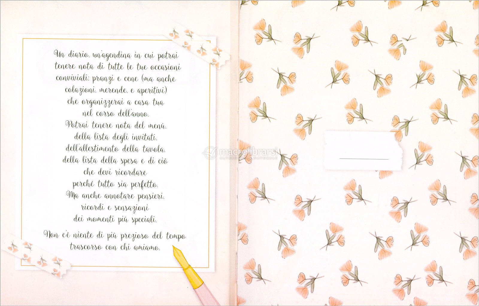 Questo diario è pensato come una piccola memoria della tua casa e del tempo trascorso con chi ami. È un’agendina da sfogliare e compilare nel corso dell’anno, in cui raccogliere le tue occasioni conviviali: pranzi, cene, ma anche colazioni, merende e aperitivi.