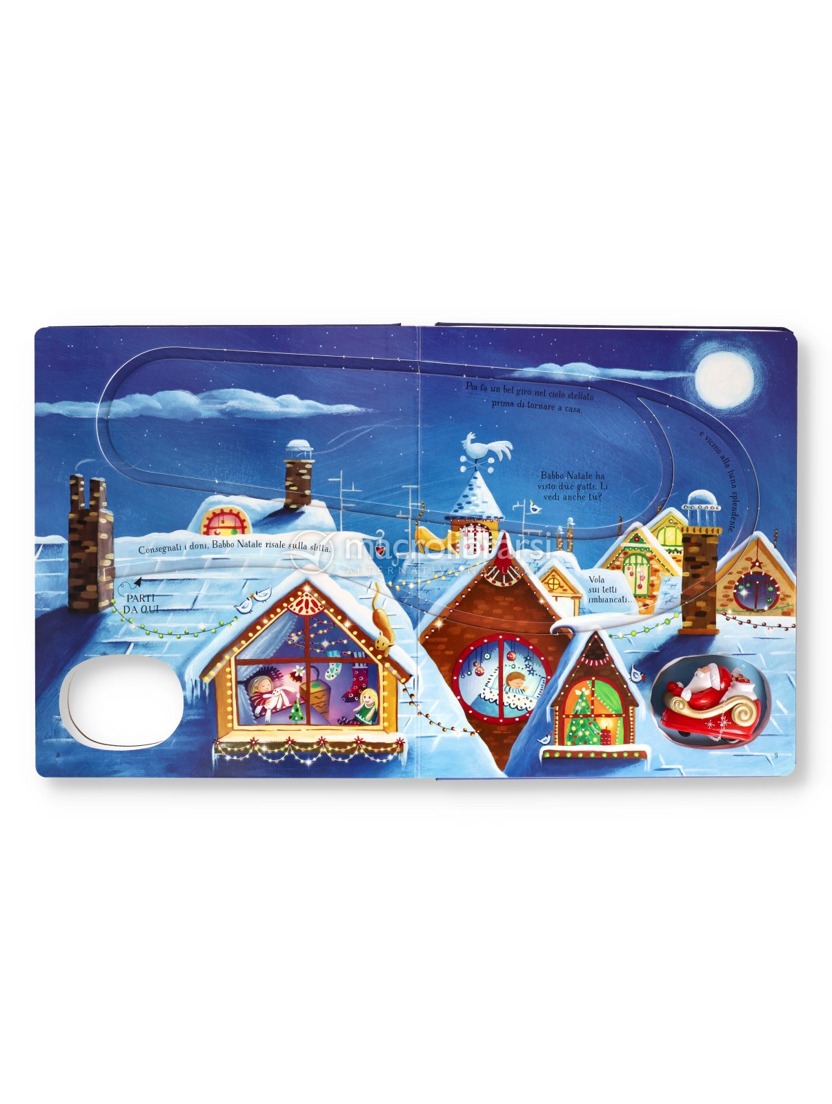 Dai la carica alla slitta, lasciala andare sulla pista e segui Babbo Natale sulle 4 piste incorporate nelle pagine mentre consegna i doni in giro per il mondo.