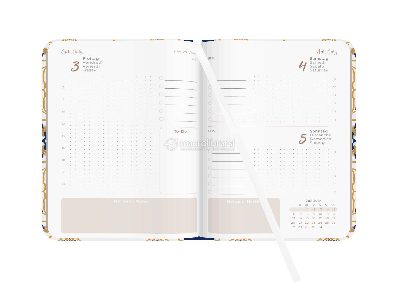 - Molto spazio per le annotazioni: 352 pagine con 1 giorno per pagina, suddivisione oraria 06–22, lista delle cose da fare e area note aggiuntiva