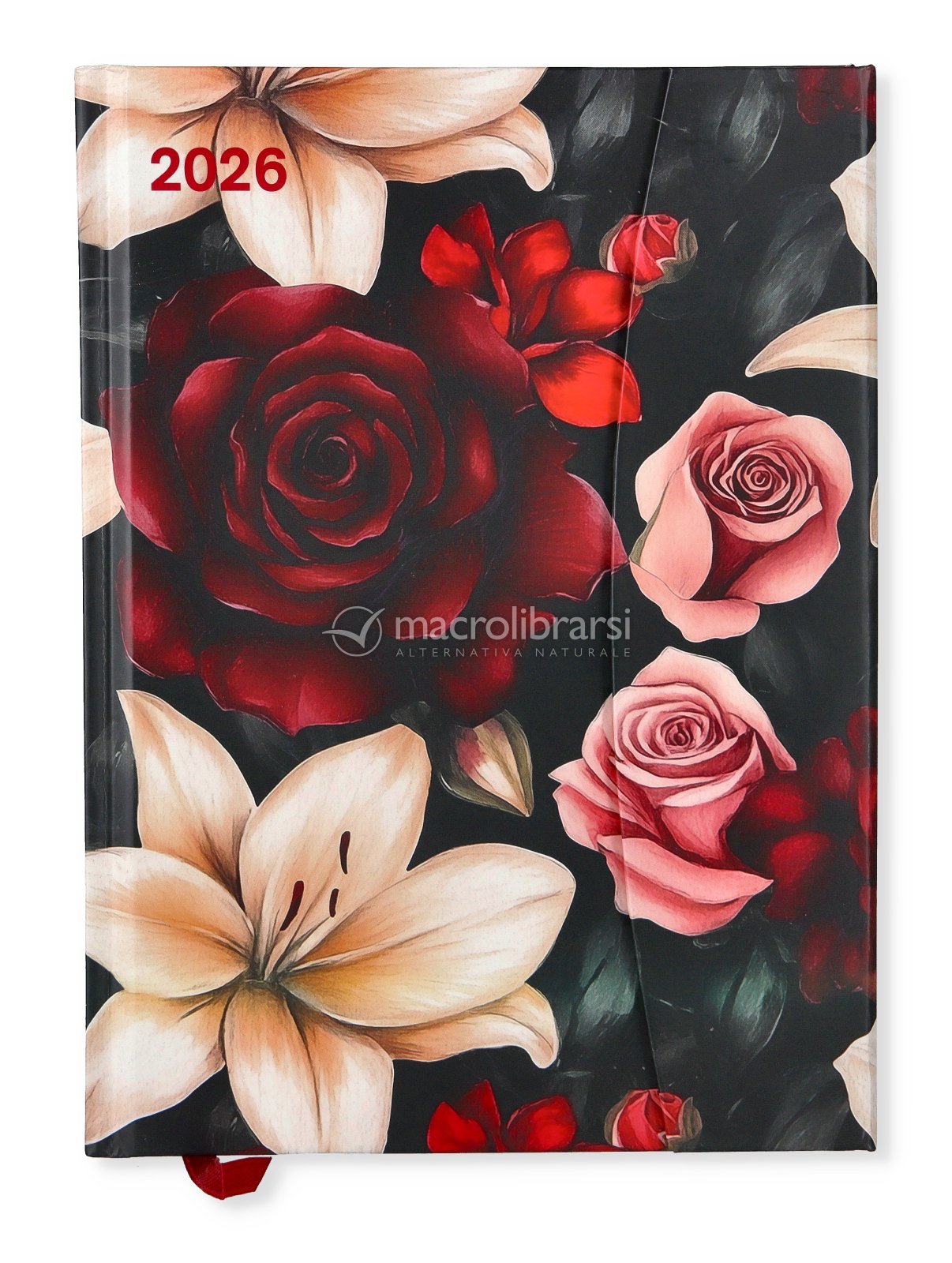 La sua copertina floreale dai toni profondi – tra rose cremisi, gigli avorio e sfumature vellutate – crea subito un’atmosfera raccolta, ideale per chi cerca un'agenda che non sia solo funzionale, ma anche capace di ispirare calma e bellezza durante le giornate più dense.