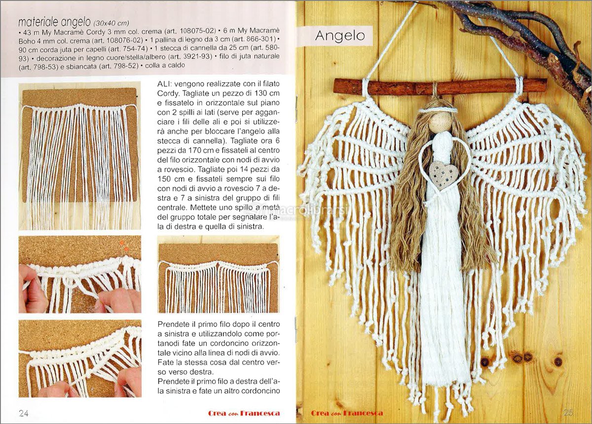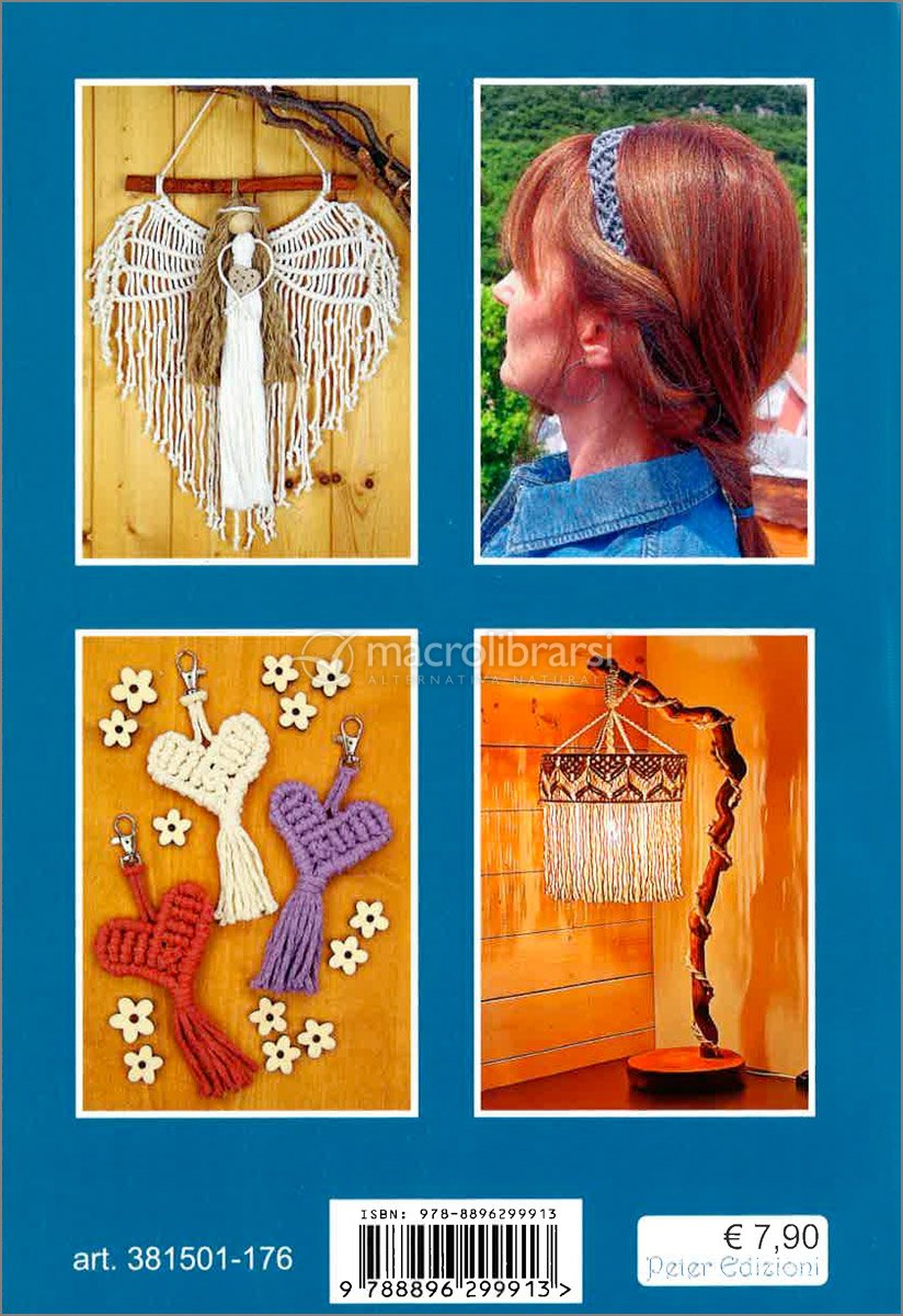 Tante decorazioni realizzate con la tecnica Macramé, corredato di scuola dei nodi principali e foto passo a passo di tutti i progetti.