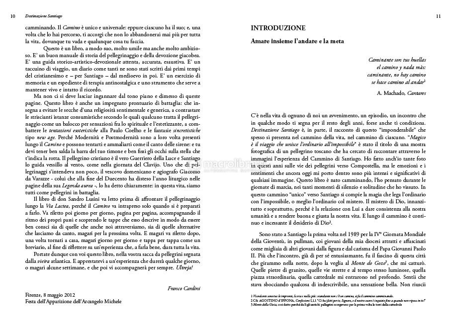 Questo è un libro, a modo suo, molto umile ma anche molto ambizioso... Portate dunque con voi questo libro, nella vostra sacca da pellegrini segnata dalla vieira atlantica. E apprestatevi a un'esperienza che durerà qualche giorno, o magari alcune settimane, e che poi vi accompagnerà per sempre." (dalla prefazione di Franco Cardini)