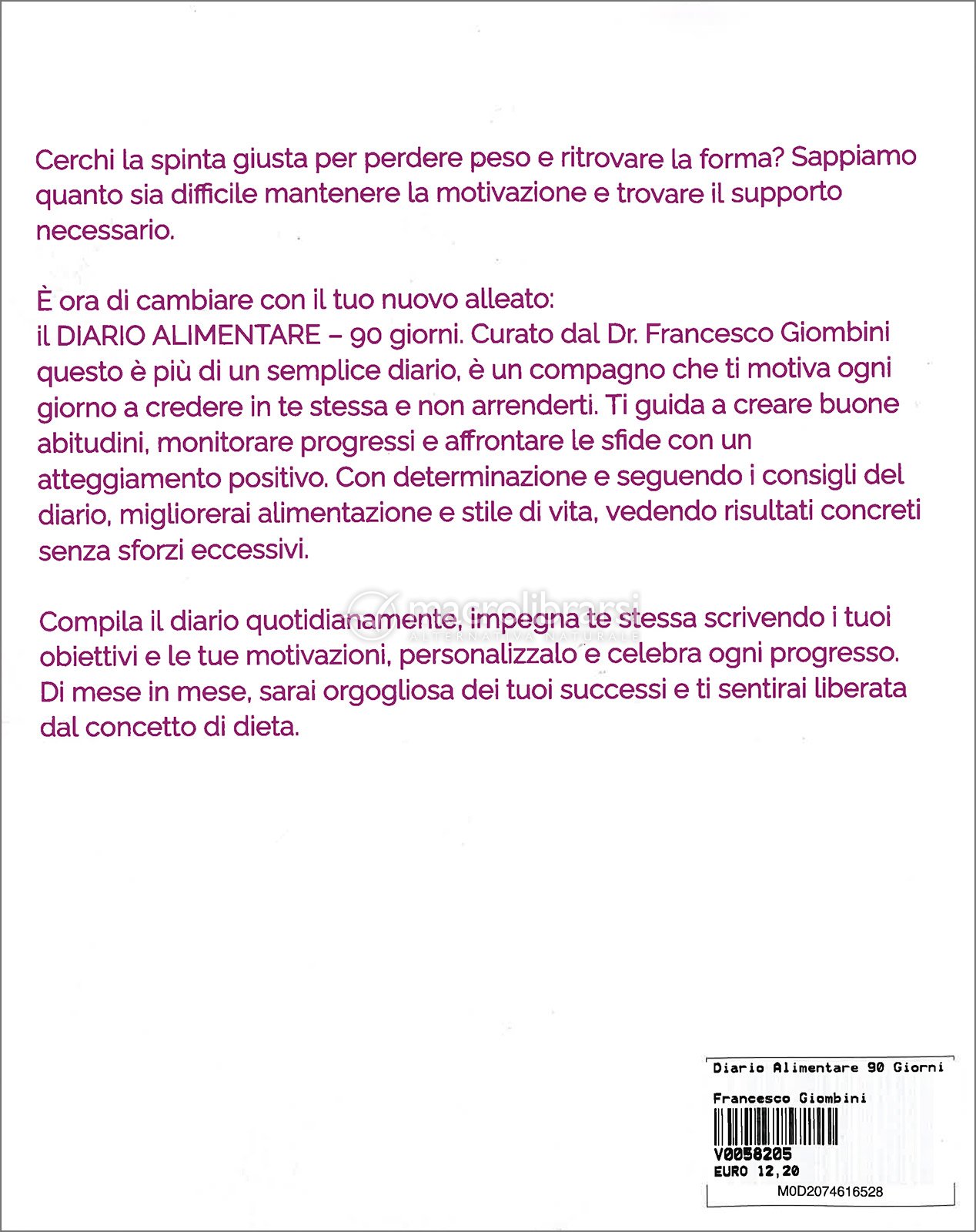 | Lo trovi in | Libreria: #Diari e Journaling #Diari e Journaling #Perdere peso #Autostima #Benessere e salute |