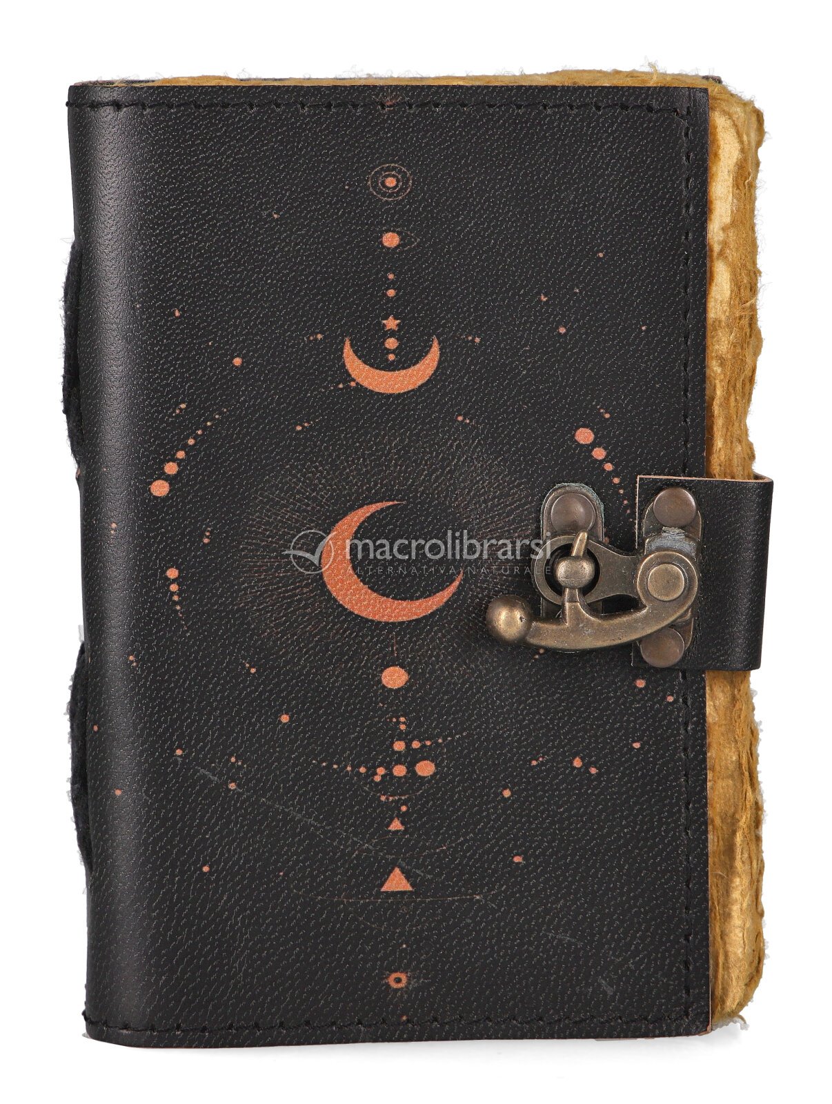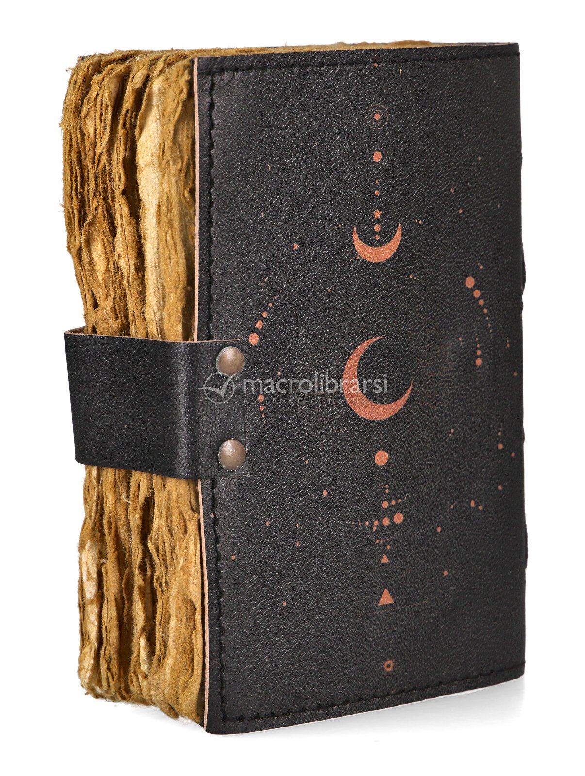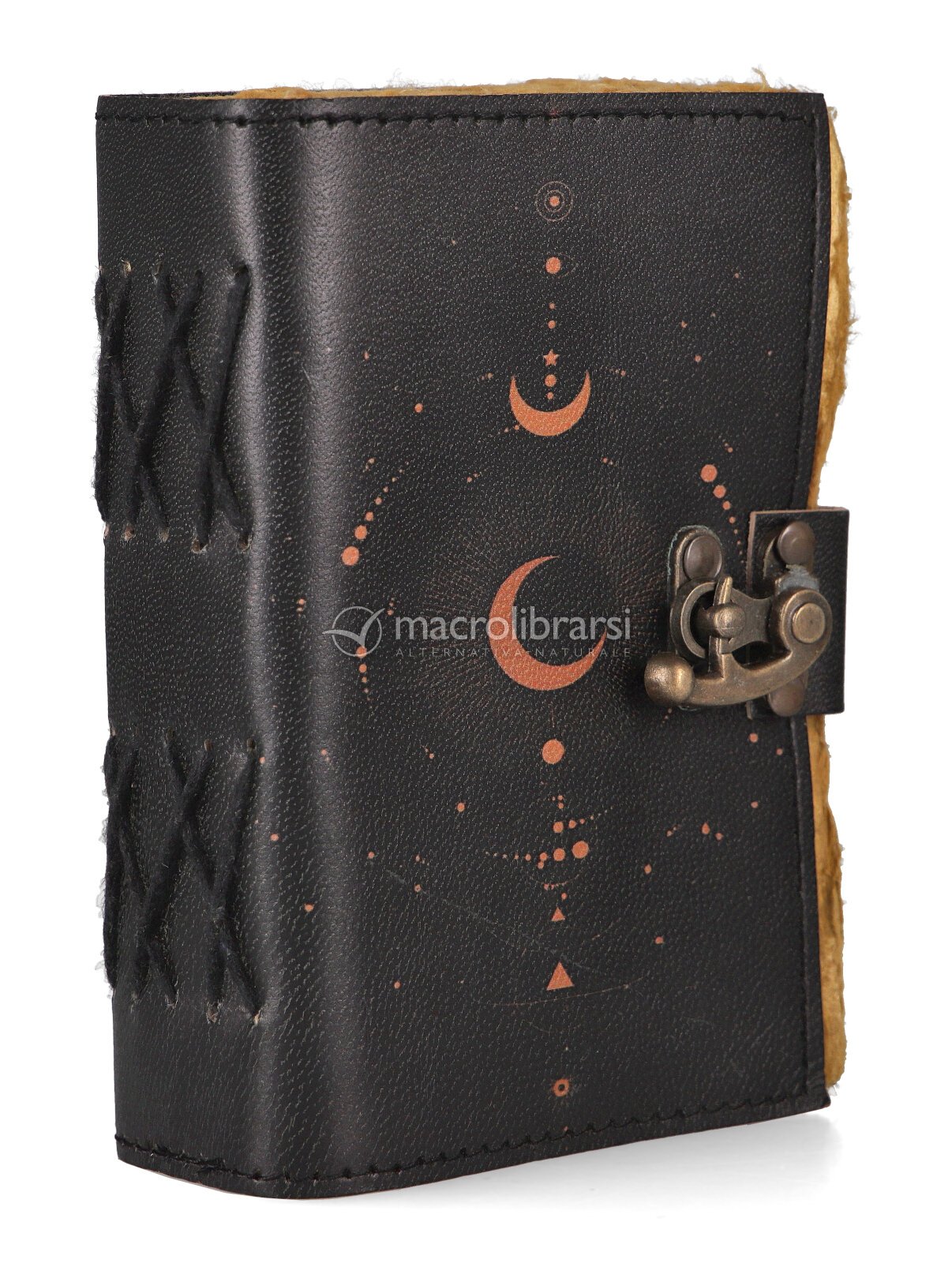 La copertina effetto pelle, decorata con fasi lunari e segni geometrici, richiama l’immaginario della notte, del mistero e dei cicli interiori, con uno stile elegante e senza tempo.