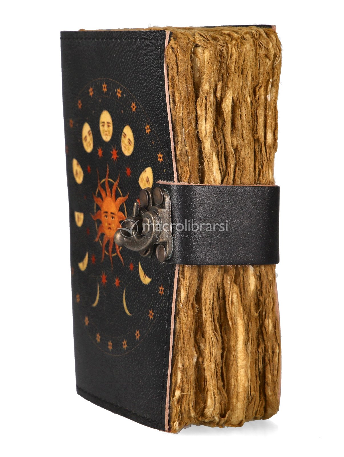 Le pagine interne dall’aspetto anticato offrono una superficie calda e materica, ideale per annotare pensieri, sogni, rituali, meditazioni, appunti o percorsi di crescita personale.