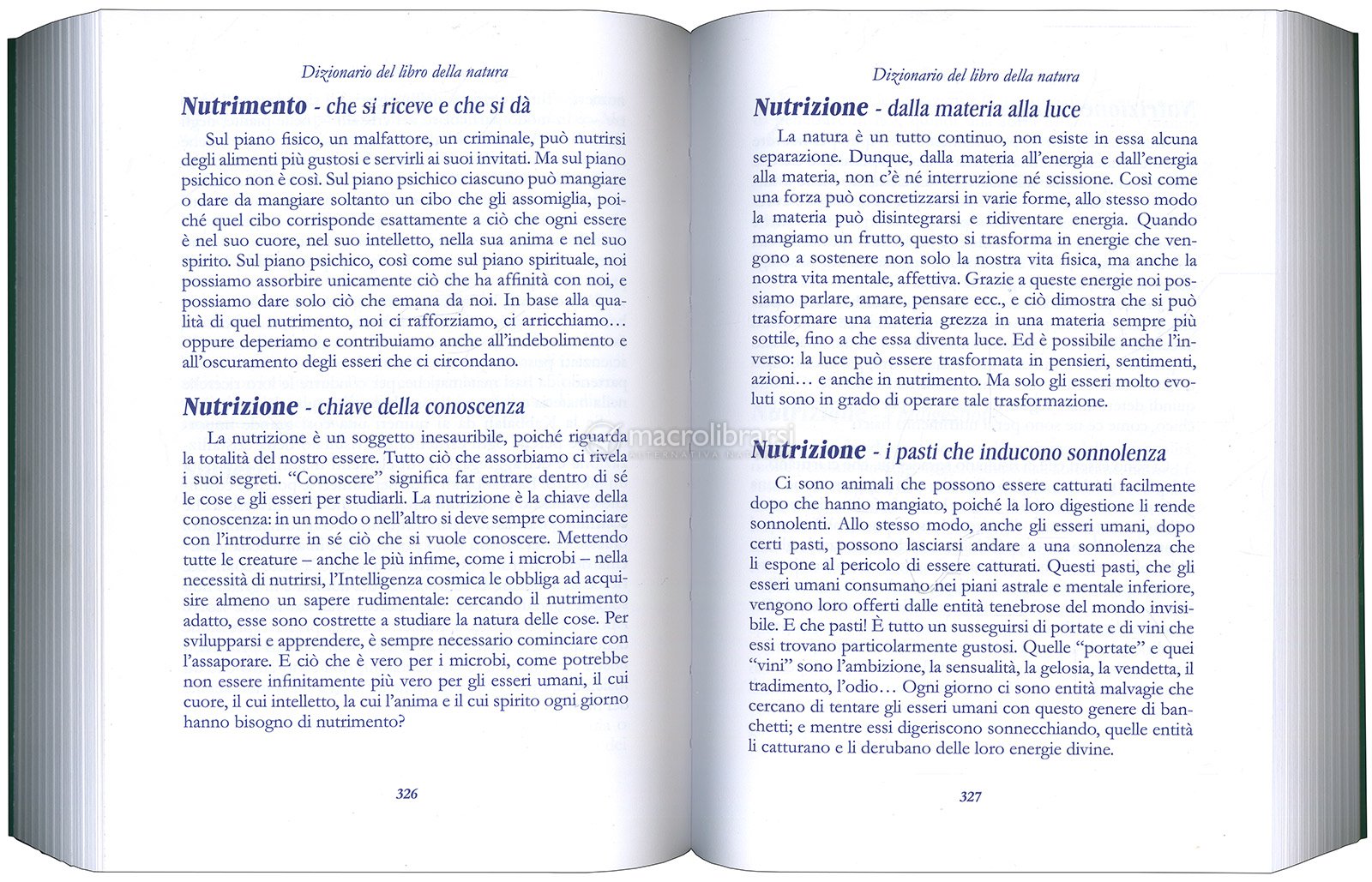 Questo libro è un compendio di pratiche per il cammino spirituale, illustrate tramite l'analogia col mondo naturale. Partendo cioè da un dato soggetto presentato in ordine alfabetico, il maestro Aivanhov ne spiega le caratteristiche particolari, e mostra come queste peculiarità si rispecchiano nell'esistenza umana, e vanno praticate nel nostro cammino di anime. Esempio: i bambini sono nostra responsabilità e vanno nutriti, puliti ed educati: idem per i nostri pensieri e sentimenti le cui conseguenze dobbiamo affrontare. Una banca deve far fruttare il denaro affidatole, e ugualmente dobbiamo fare noi con le nostre ricchezze spirituali, condividendole con gli altri. Gli alberi prendono le energie terrene e le trasformano in energie elevate di cui poi si nutrono; allo stesso modo noi dobbiamo trasmutare le energie, i sentimenti ed i pensieri gravi in forme più elevate... I concetti esposti sono semplici, ma non sono mai banali. Un libro che andrebbe studiato a scuola. Se avete bambini, fateglielo leggere!!!