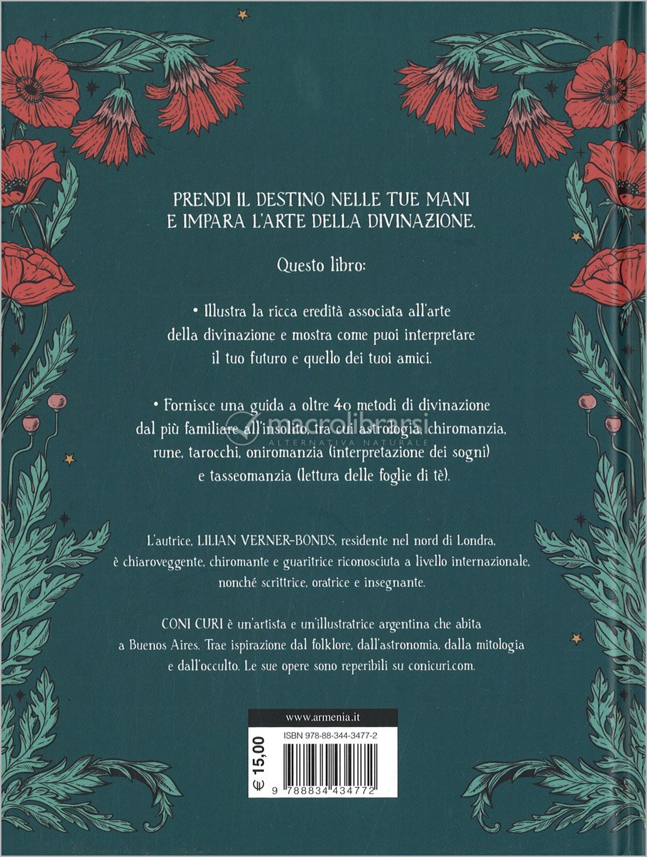 - Fornisce una guida a oltre 40 metodi di divinazione dal più familiare all’insolito, tra cui astrologia, chiromanzia, rune, tarocchi, oniromanzia (interpretazione dei sogni) e tasseomanzia (lettura delle foglie di tè).