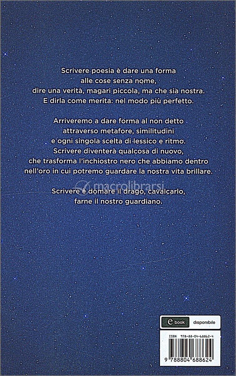 “Questo non è un corso di scrittura creativa, è un metodo per mettere a fuoco ciò che siamo, guardare la nostra vita e decifrare il senso di un destino. Daremo alla poesia lo spazio per nascere, impareremo a estrarla e lavorarla come una pietra, a stupirci nel vederla fiorire e infine a incastonarla, portarla addosso come un amuleto.”