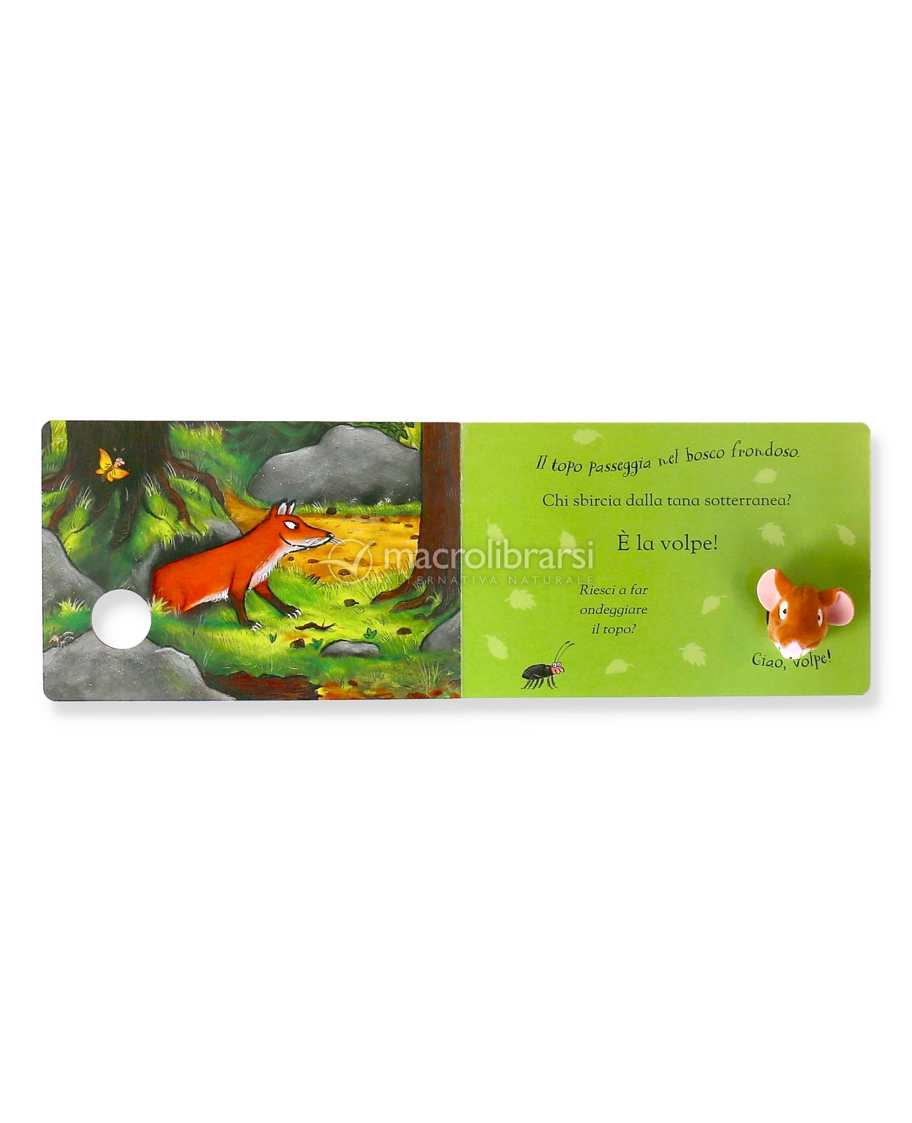 Un libro per divertirsi facendo ondeggiare, abbassare e nascondere il topo quando incontra una volpe, una civetta, un serpente e … Aiuto! Oh no! Un Gruffalò!