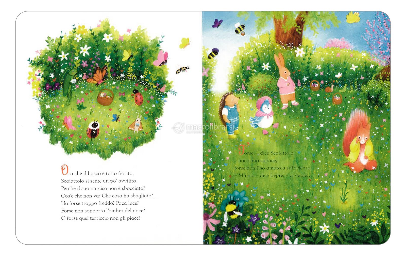 Tra prati che si colorano, fiori che sbocciano e piccoli incontri nel bosco, la storia accompagna i bambini in un viaggio fatto di scoperte quotidiane e meraviglia.