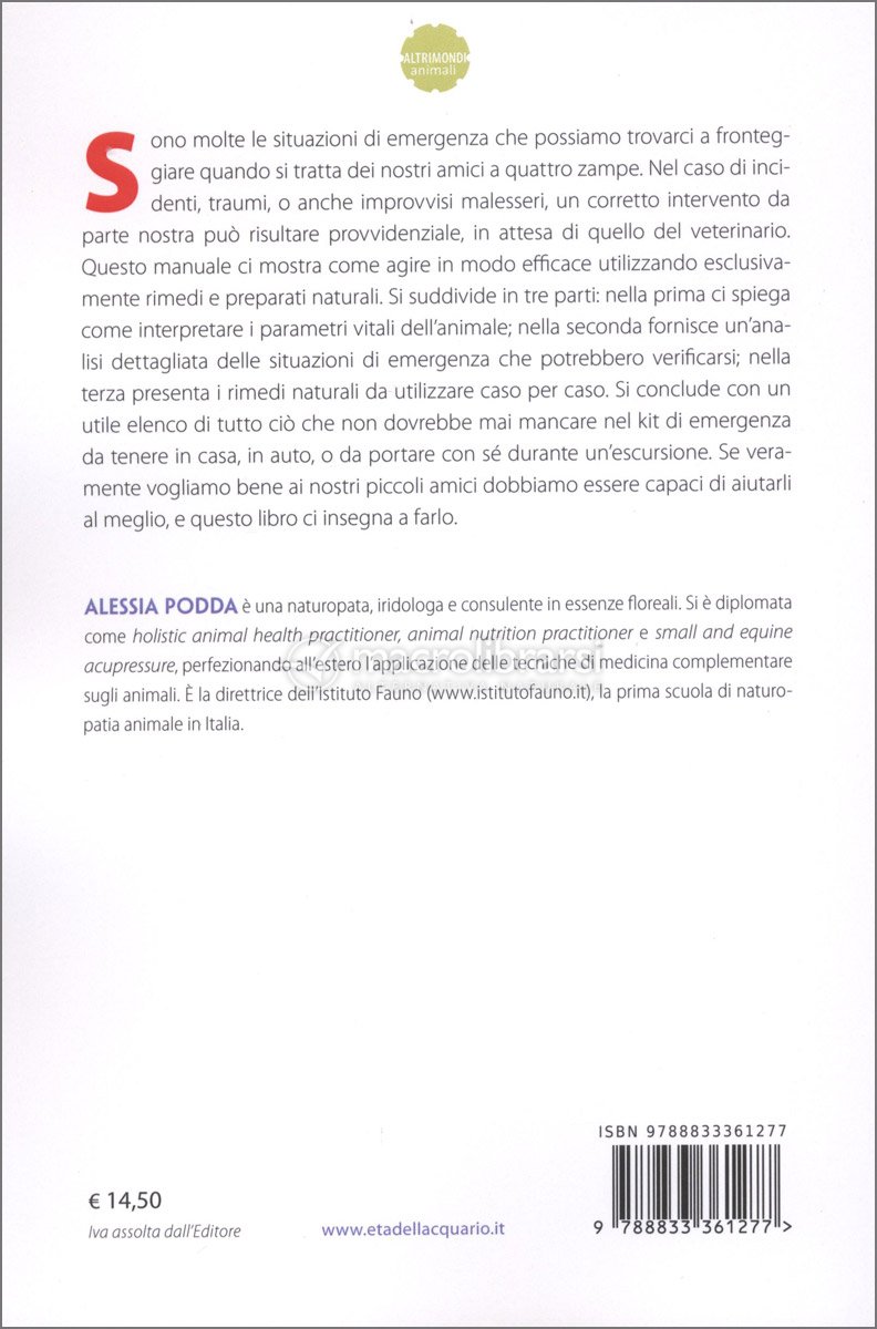 Questo manuale pratico offre la possibilità di supportare l’animale, ferito o in stato critico, con l’esclusivo utilizzo di rimedi e preparati naturali, prestando un primo soccorso sul posto che in molti casi può risultare provvidenziale per la vita del nostro amico.