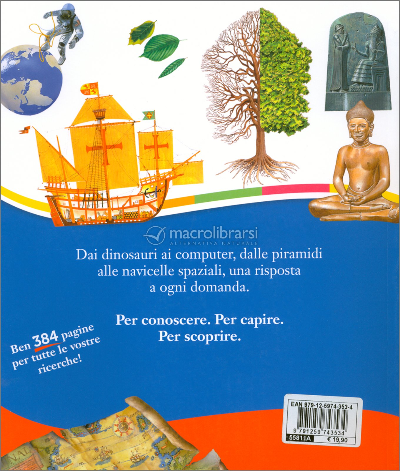 Un'enciclopedia per le prime ricerche che raccoglie tantissime informazioni e soddisfa le curiosità dei più piccoli sui più svariati argomenti: dai dinosauri ai computer, dalle piramidi alle navicelle spaziali, dagli scienziati ai grandi della storia, dal corpo umano al mondo degli animali.