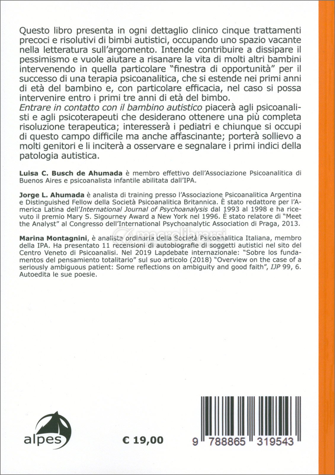 Entrare in contatto con il bambino autistico piacerà agli psicoanalisti e agli psicoterapeuti che desiderano ottenere una più completa risoluzione terapeutica; interesserà i pediatri e chiunque si occupi di questo campo difficile ma anche affascinante; porterà sollievo a molti genitori e li inciterà a osservare e segnalare i primi indici della patologia autistica.